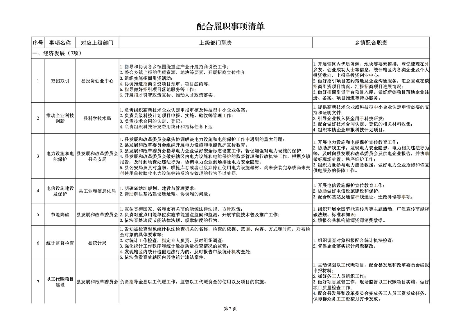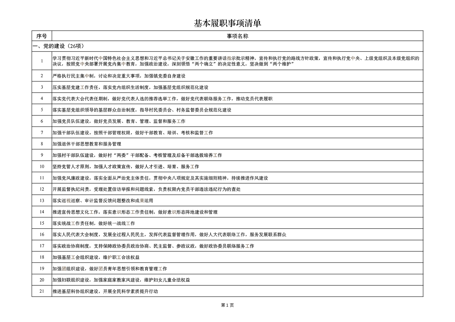 履职事项清单
