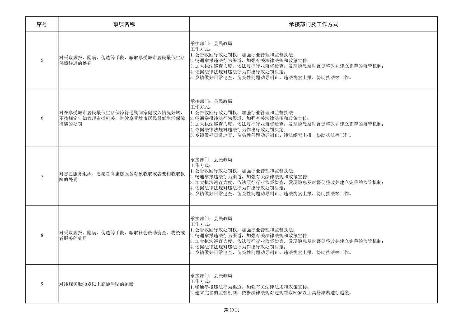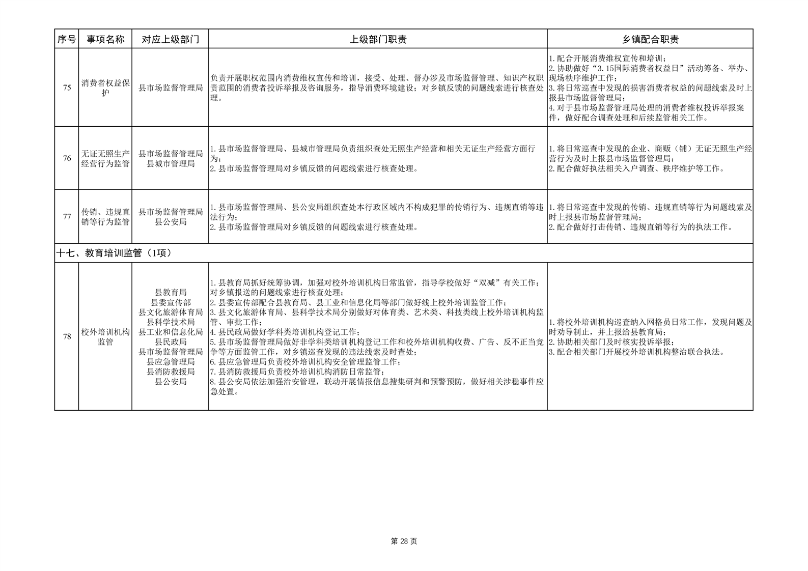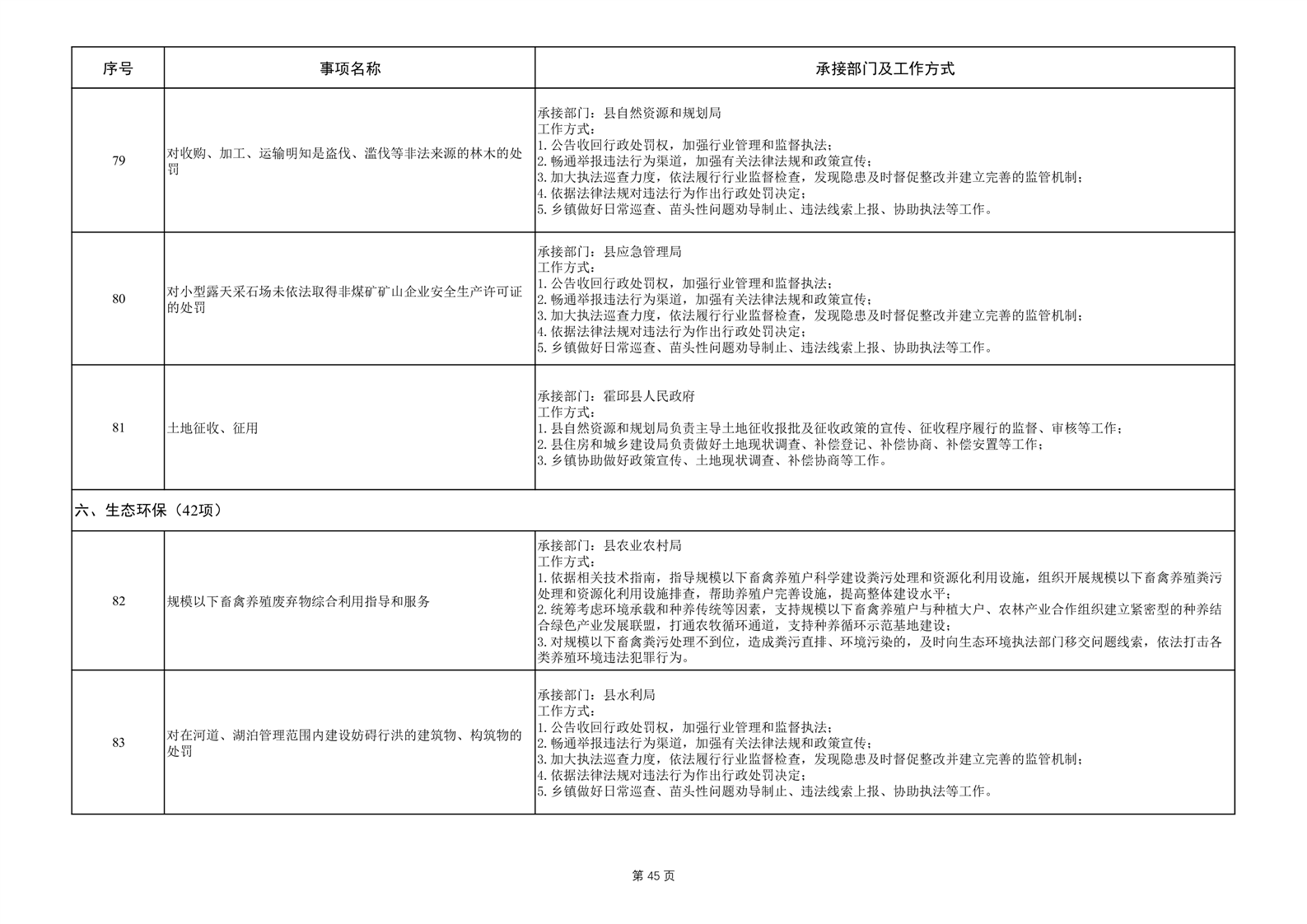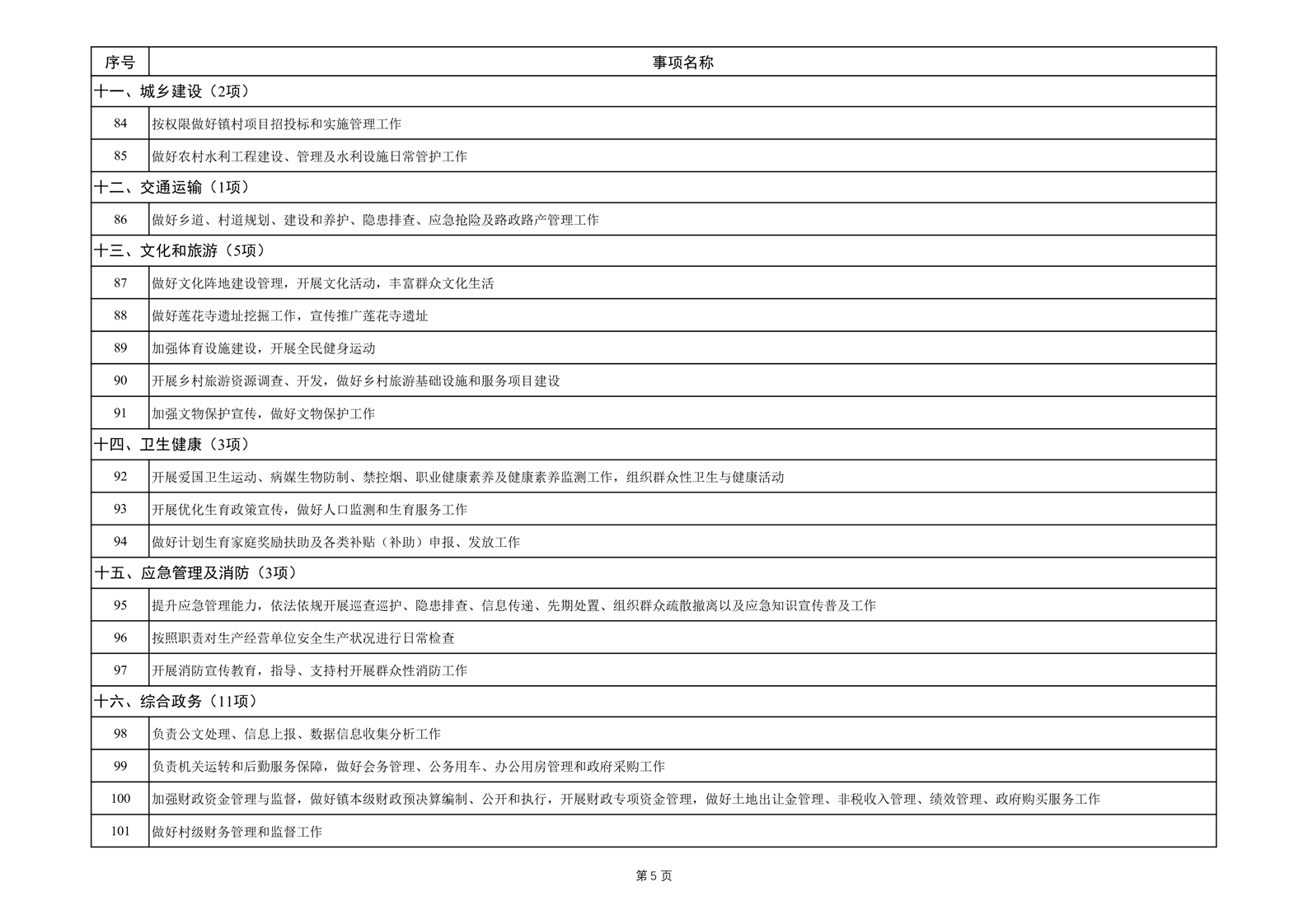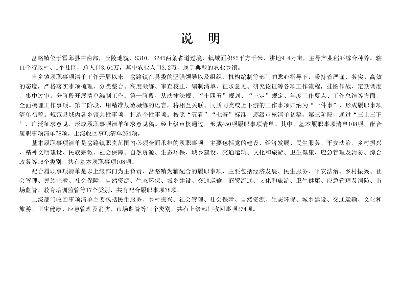 六安市霍邱县岔路镇履职事项清单