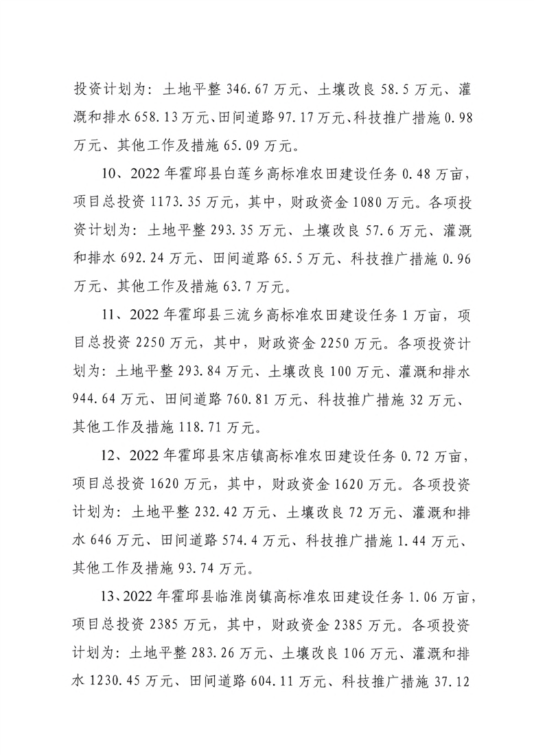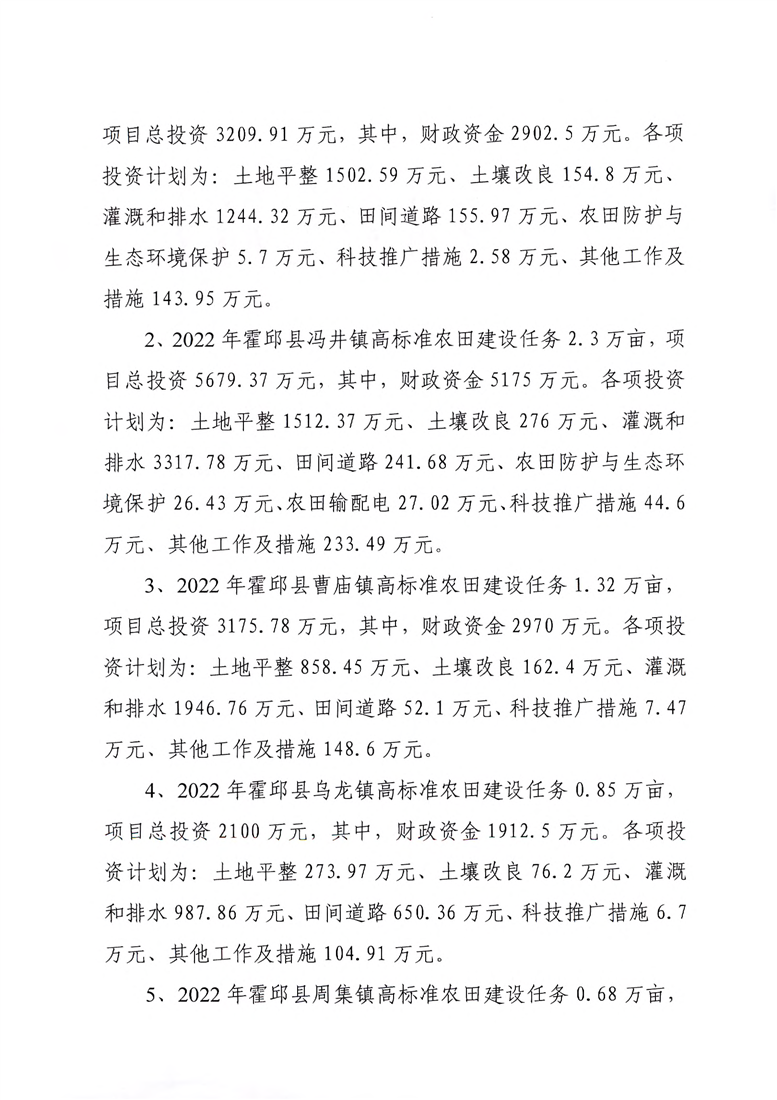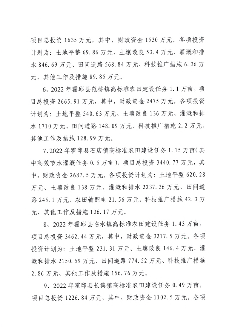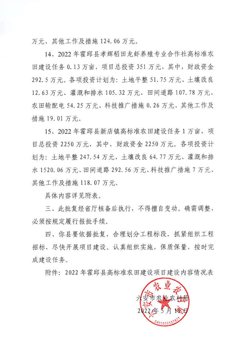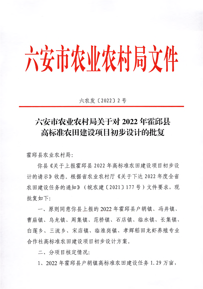 六安市农业农村局关于对2022年霍邱县高标准农田建设项目初步设计的批复