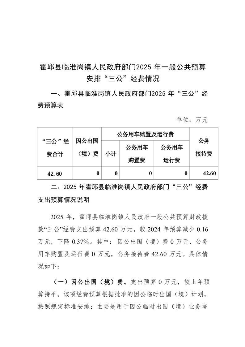 霍邱县临淮岗镇人民政府部门2025 年一般公共预算 安排“三公”经费情况