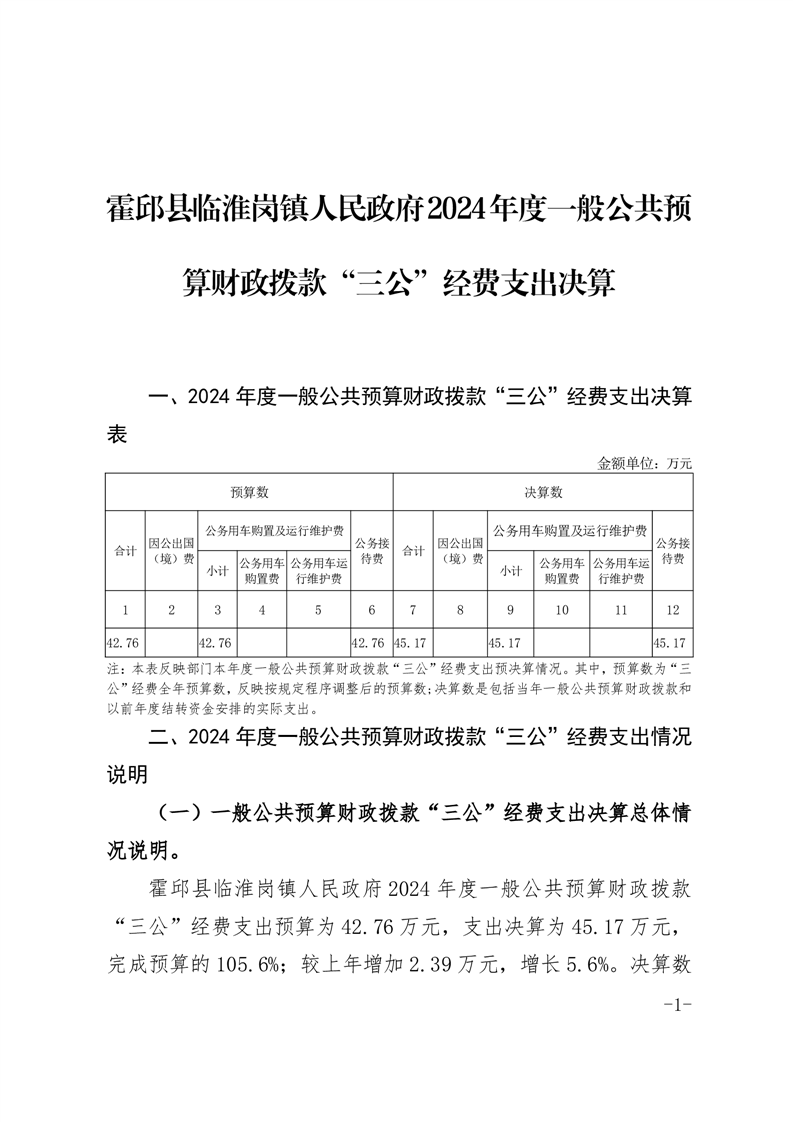 霍邱县临淮岗镇人民政府2024年度一般公共预算财政拨款“三公”经费支出决算.pdf