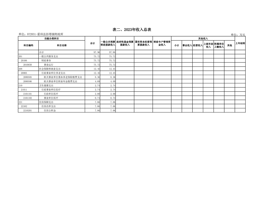 2. 霍邱县彭塔镇财政所2023年收入总表