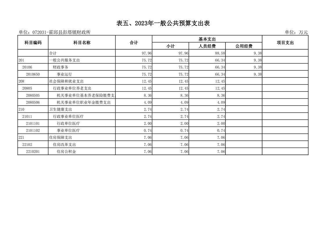 5. 霍邱县彭塔镇财政所2023年一般公共预算支出表