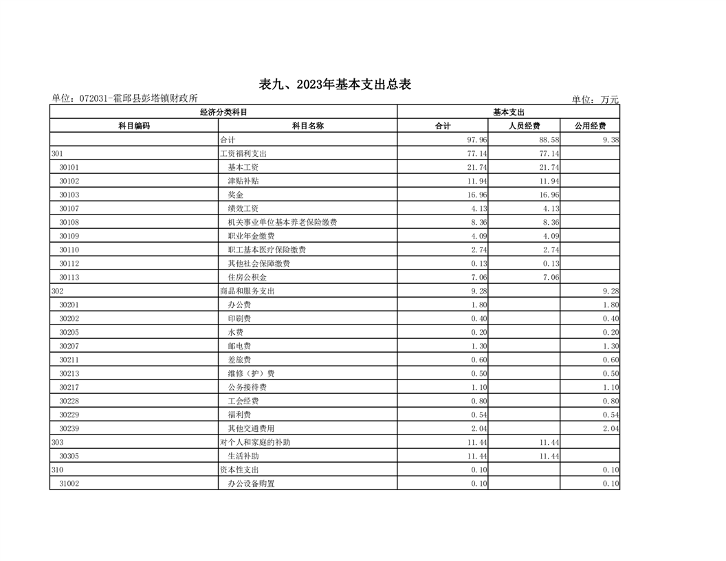 9.霍邱县彭塔镇财政所2023年基本支出总表