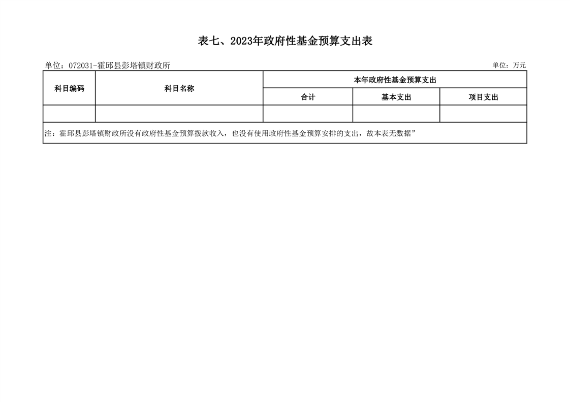 7. 霍邱县彭塔镇财政所2023年政府性基金预算支出表