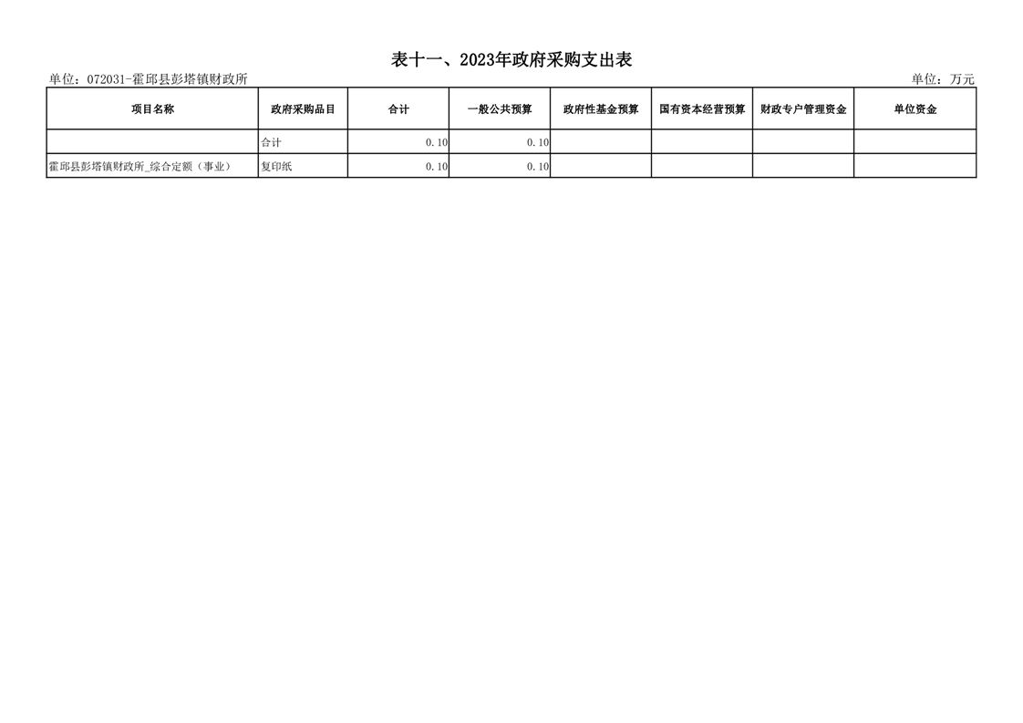 11.霍邱县彭塔镇财政所2023年政府采购支出表