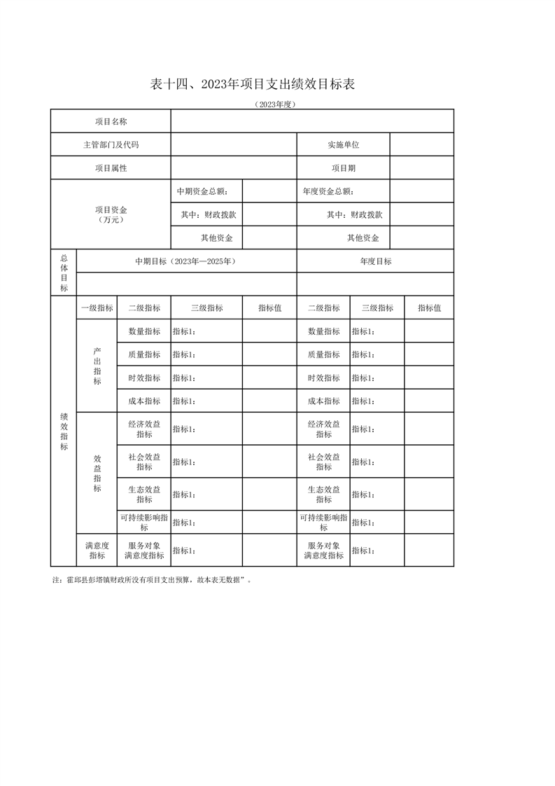 2023年霍邱县彭塔镇财政所没有需编制绩效目标的项目。