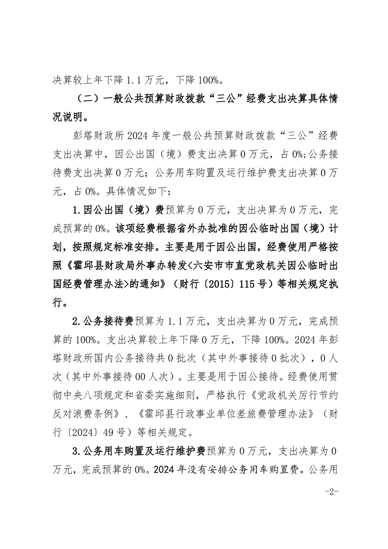 霍邱县彭塔财政所 2024年度一般公共预算财政拨款“三公”经费支出决算