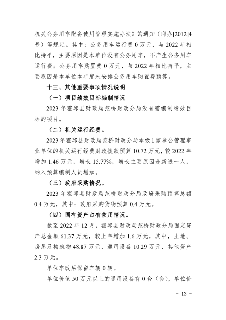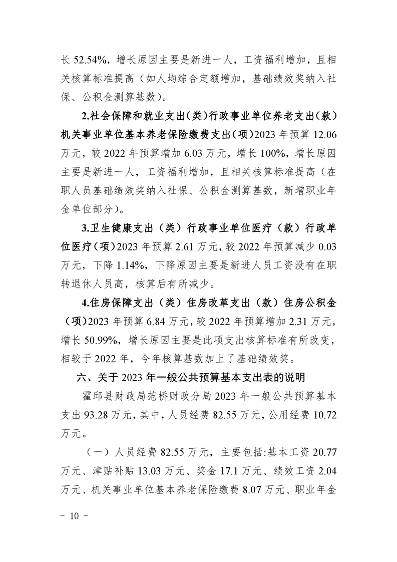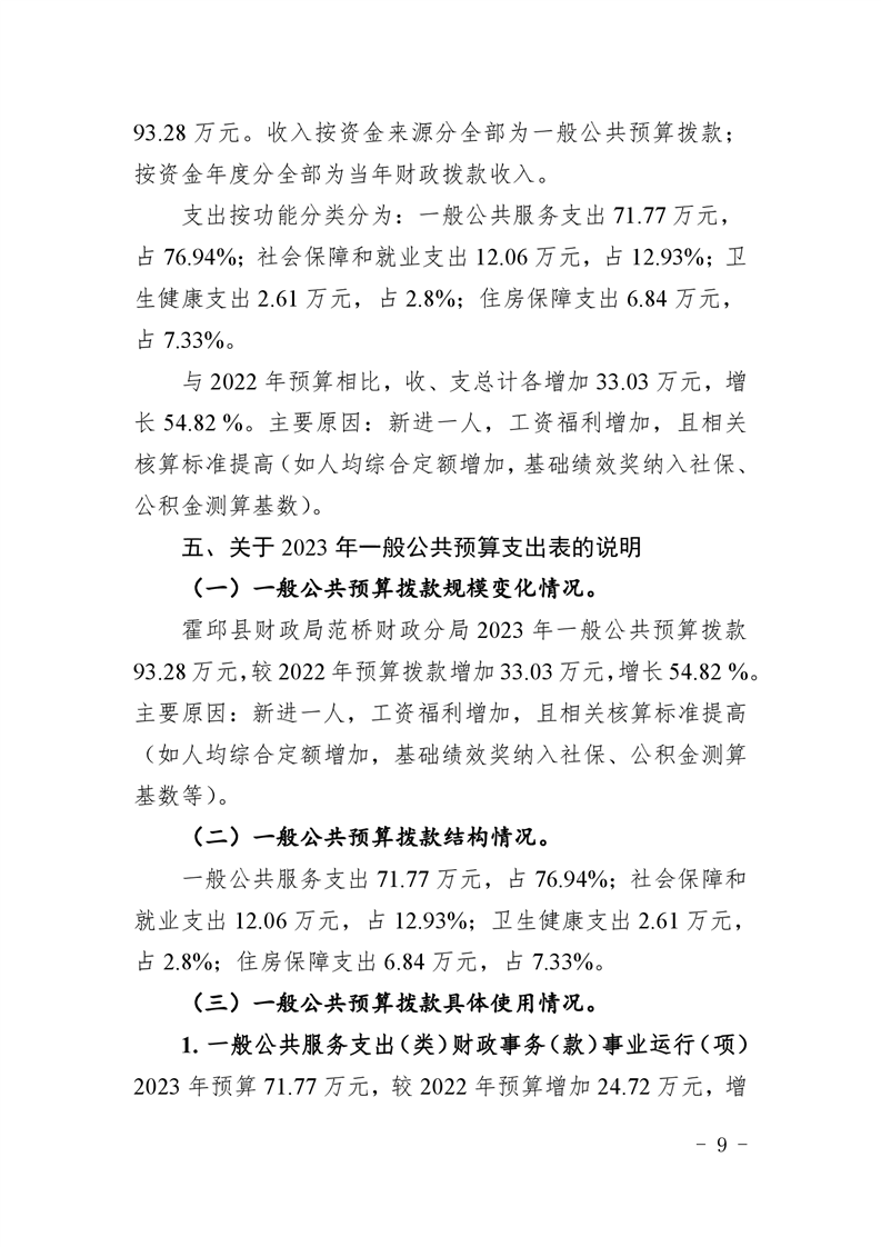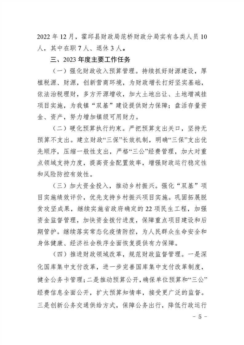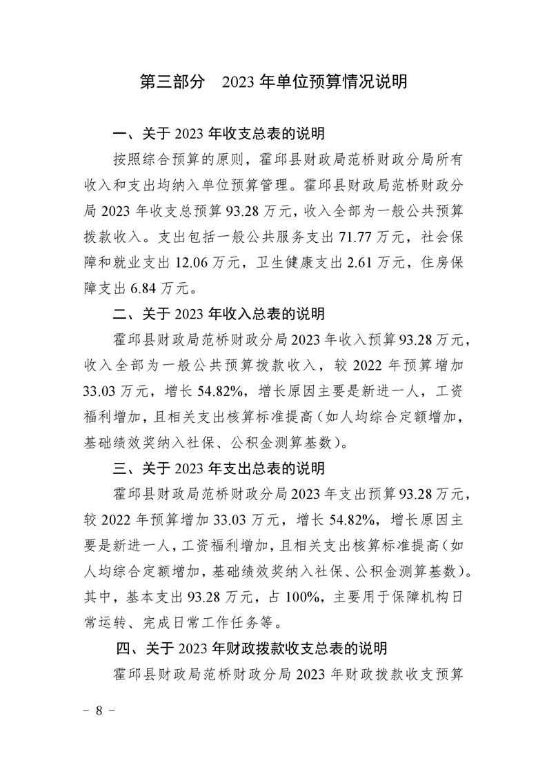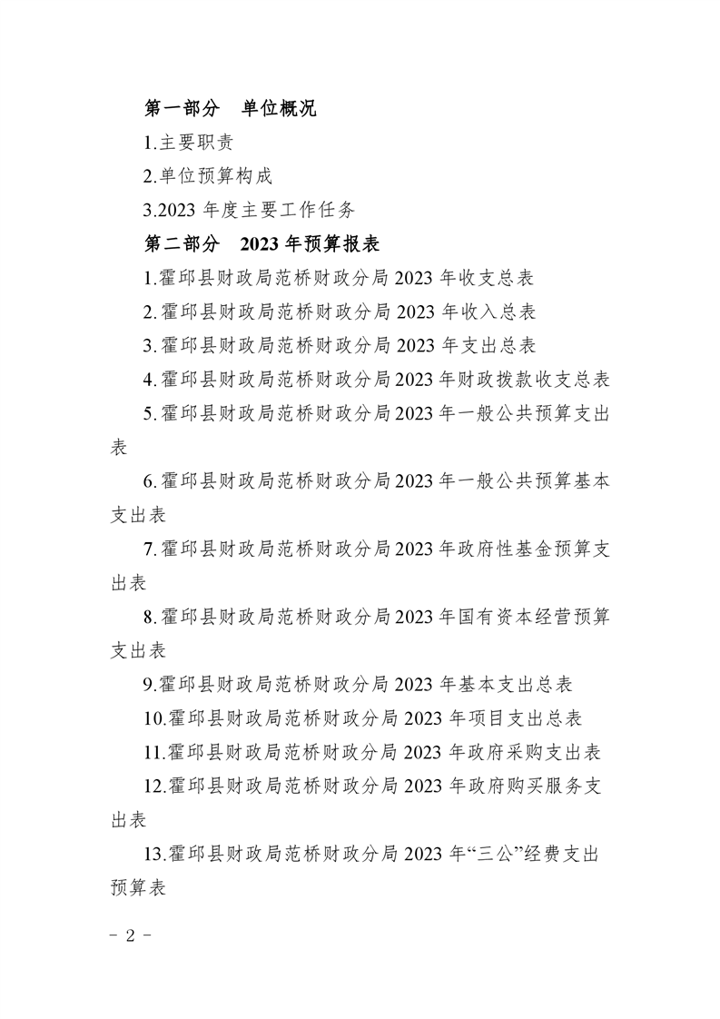 霍邱县财政局范桥财政分局2023年部门单位预算公开