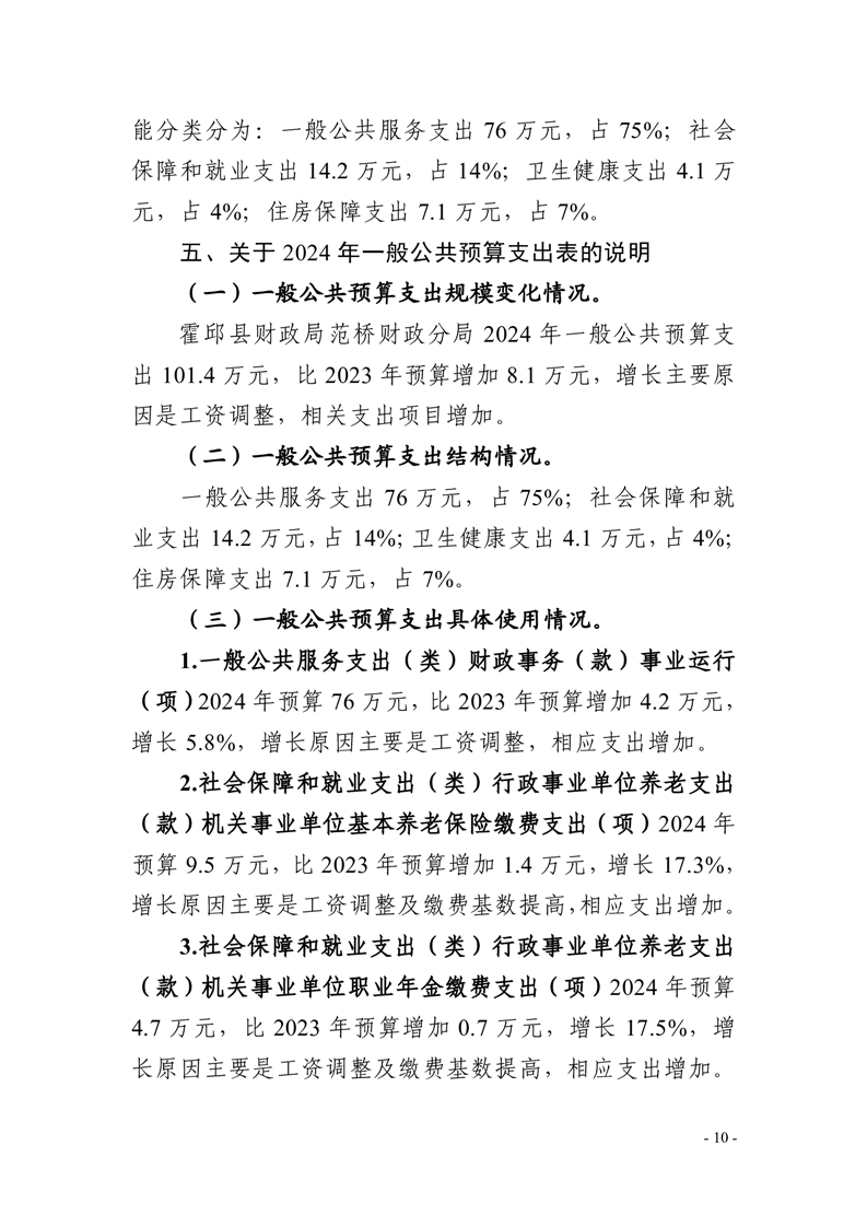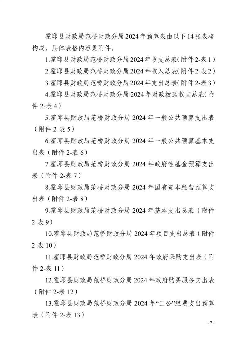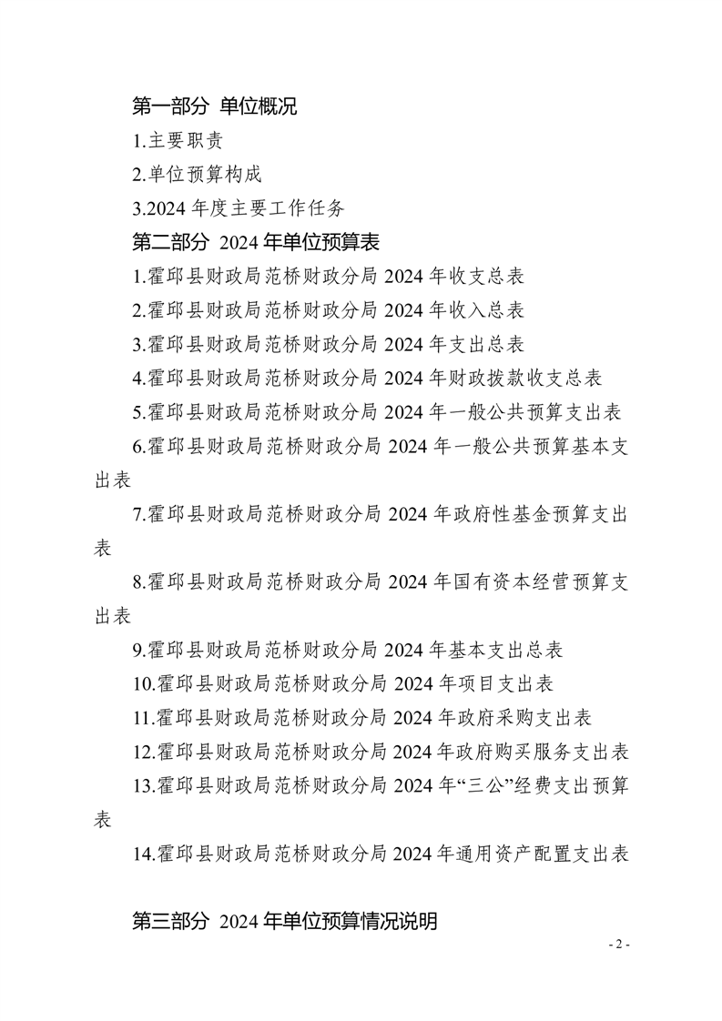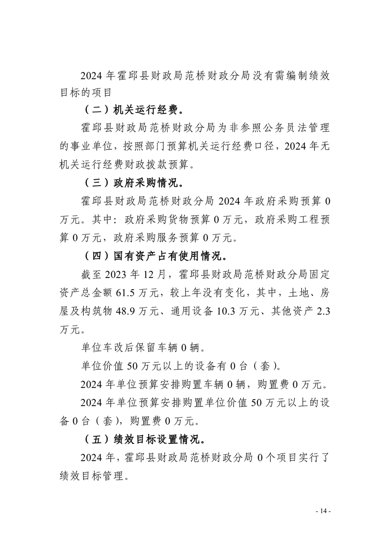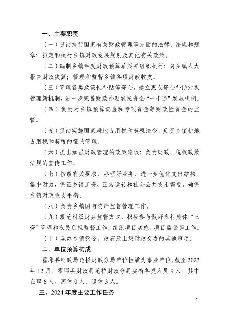 霍邱县财政局范桥财政分局2024年单位预算公开