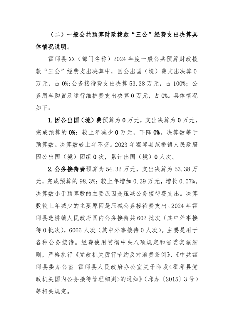 霍邱县范桥镇人民政府 2024 年度一般公共预算财政拨款“三公”经费支出决算