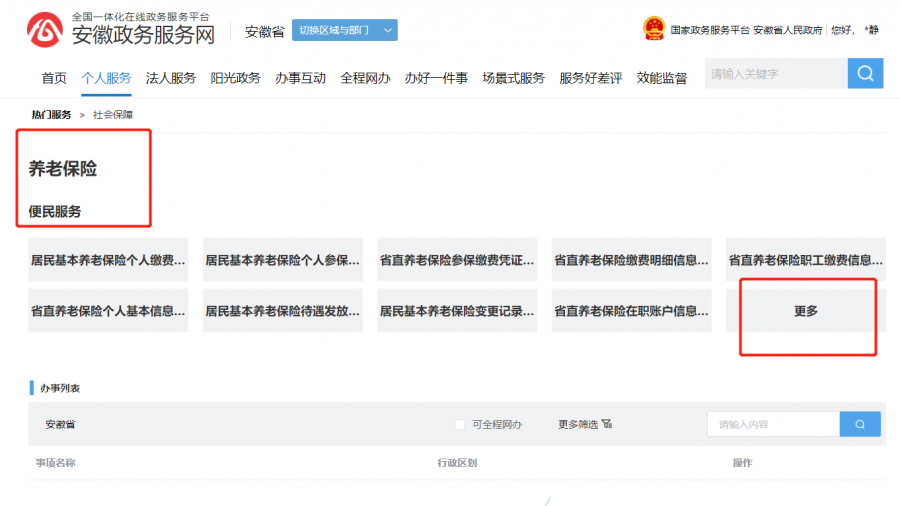 【第三步】进入“养老保险-便民服务”页面,找到您想要办理的事项。