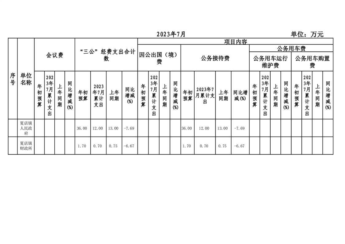 霍邱县夏店镇2023年7月“三公经费”和会议费支出情况统计表