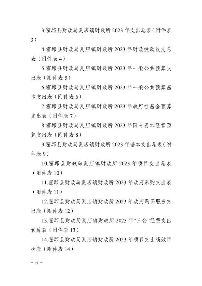 霍邱县财政局夏店镇财政分局2023年预算公开情况