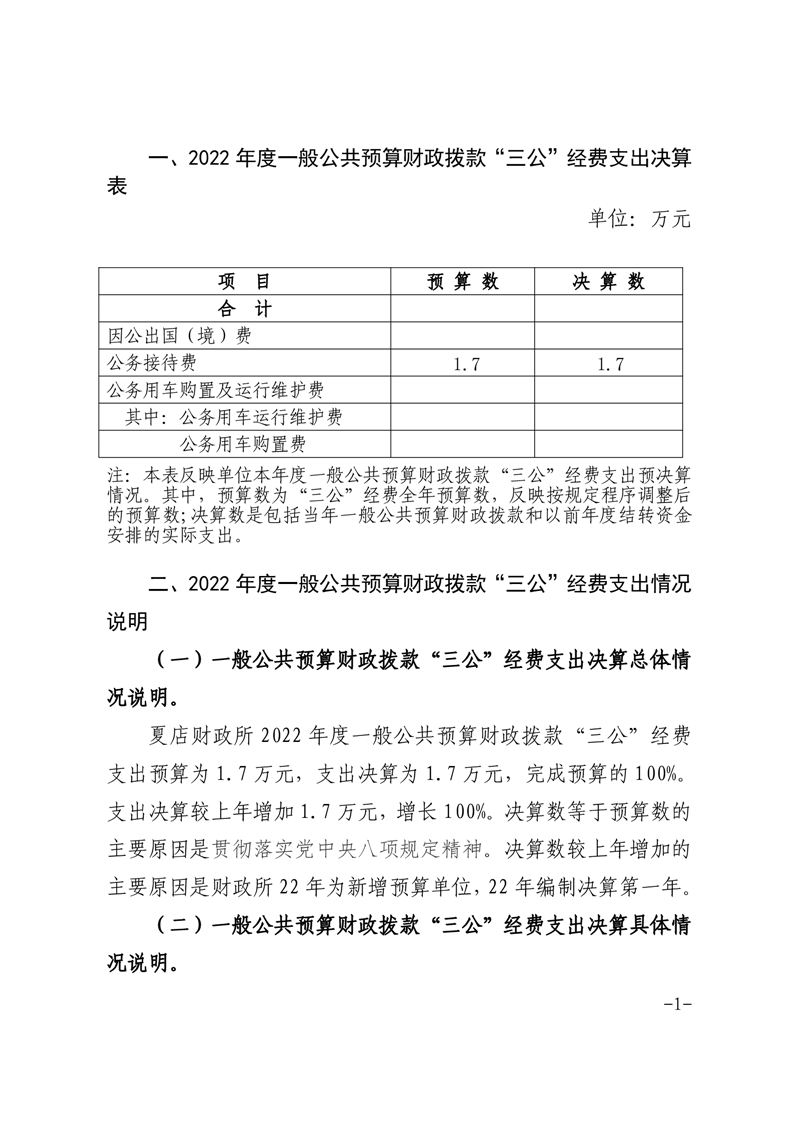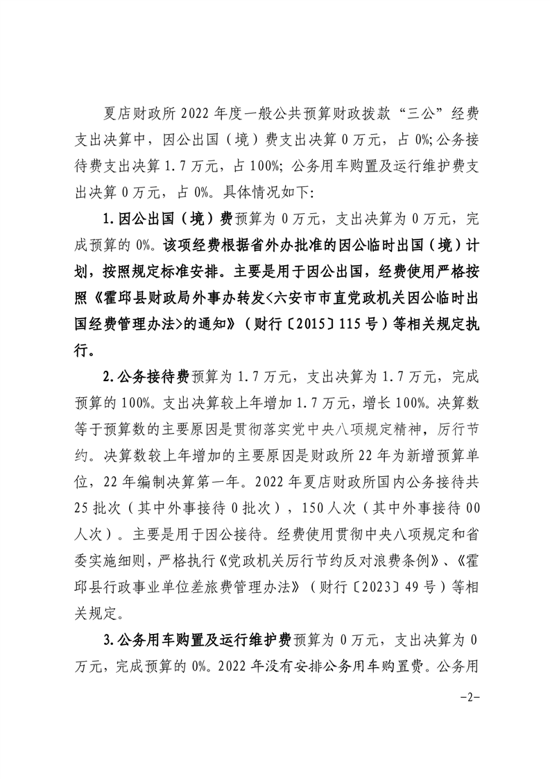 霍邱县夏店镇财政所2022年一般公共预算财政拨款“三公”经费支出决算情况