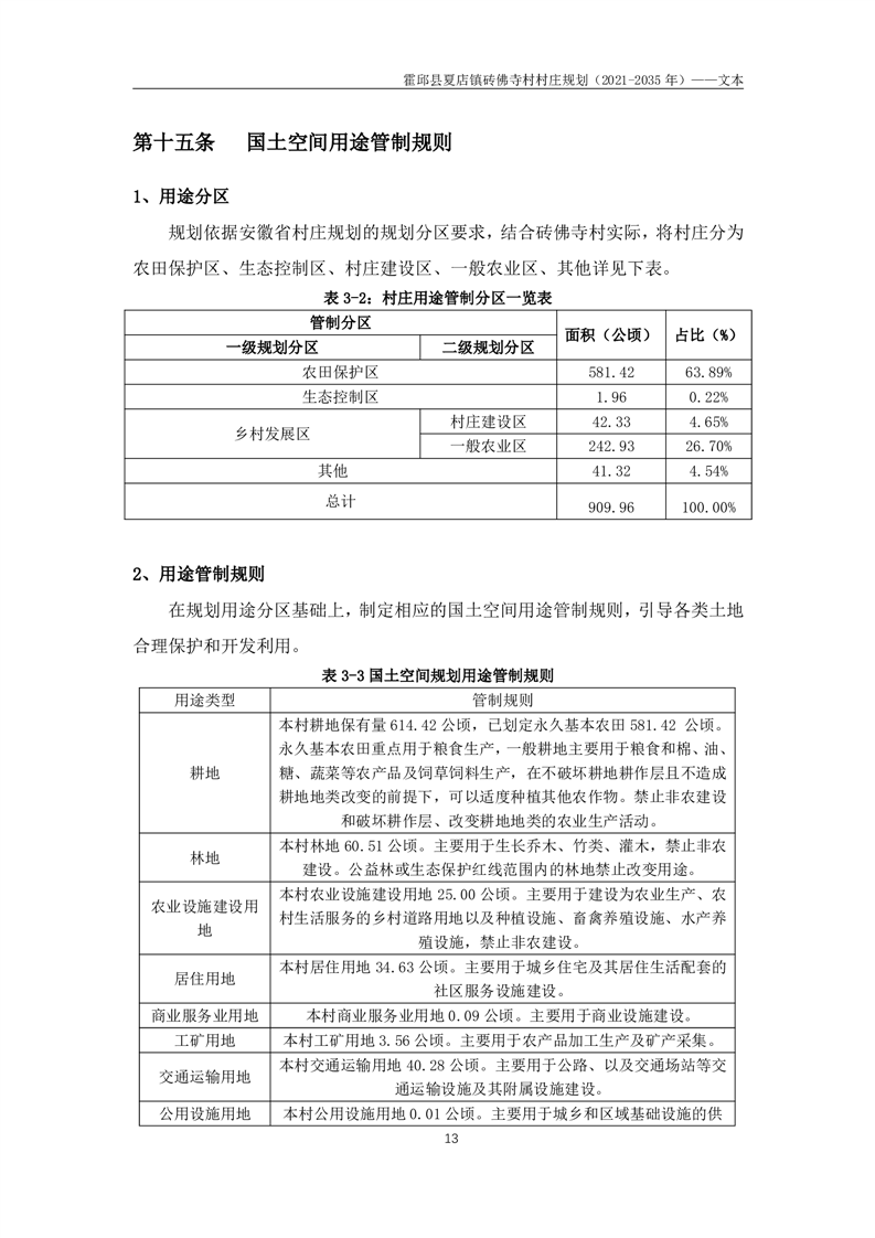六安市霍邱县夏店镇砖佛寺村村庄规划(2021-2035年)文本