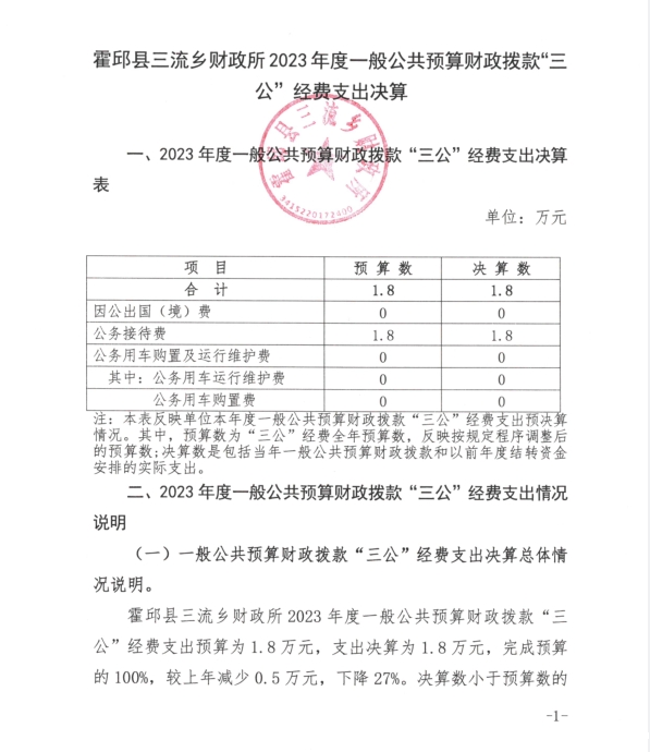 霍邱县三流乡财政所2023年度"三公经费"支出公开