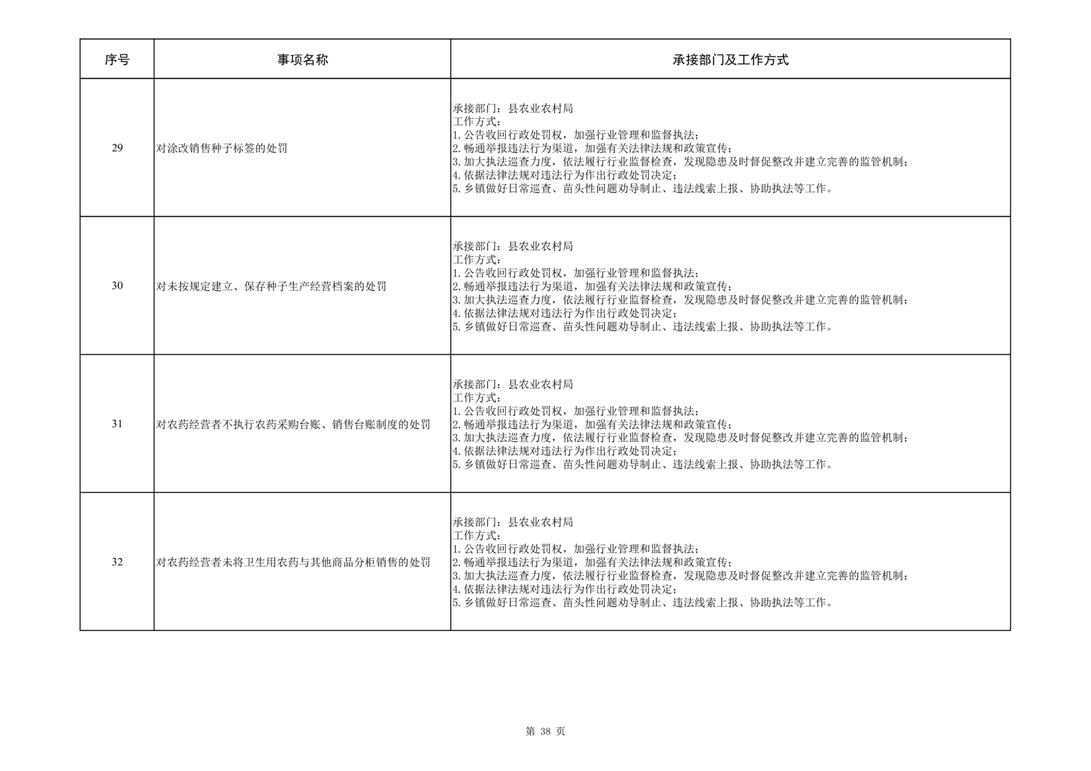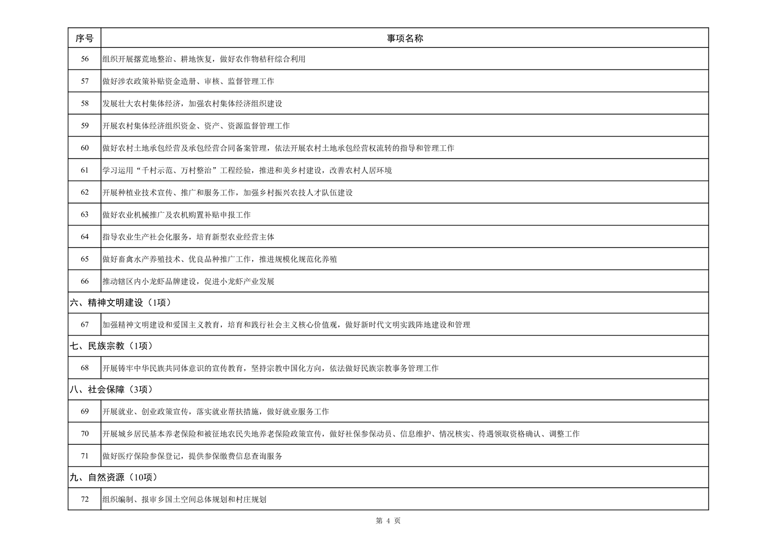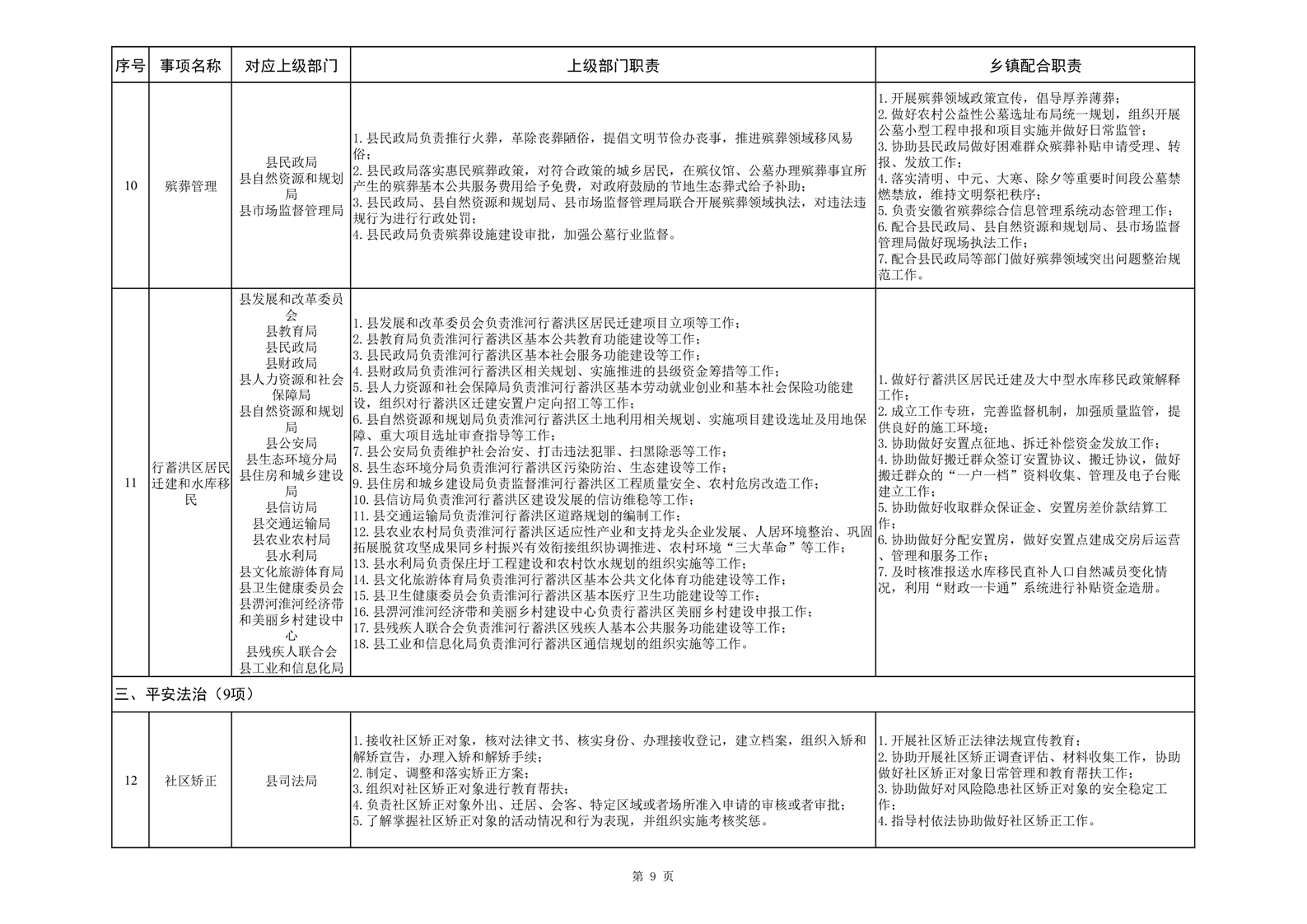 霍邱县三流乡履行职责事项清单