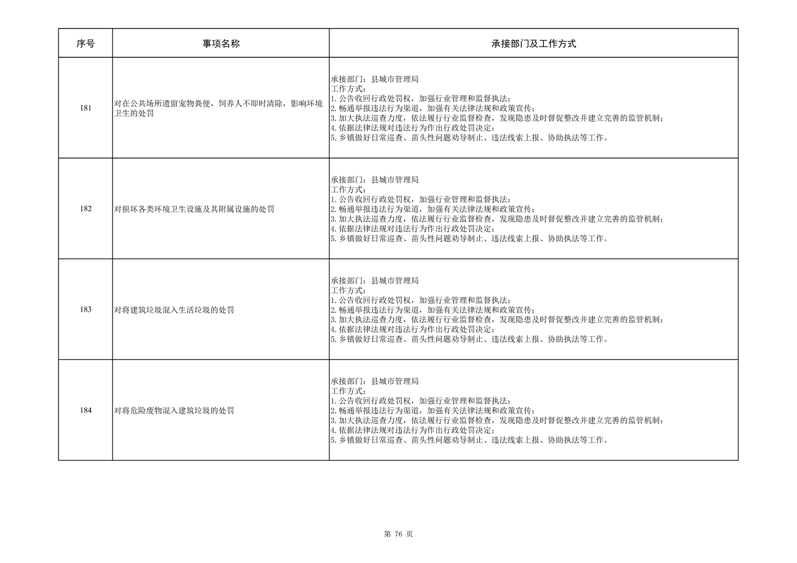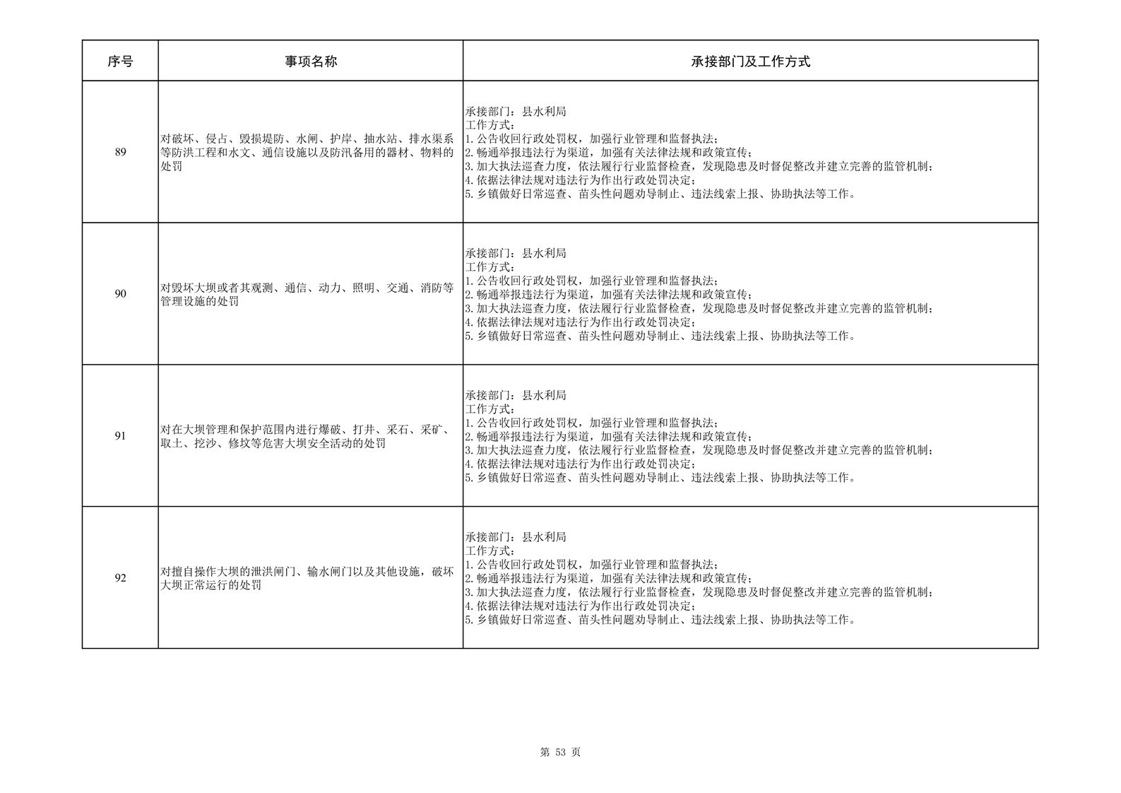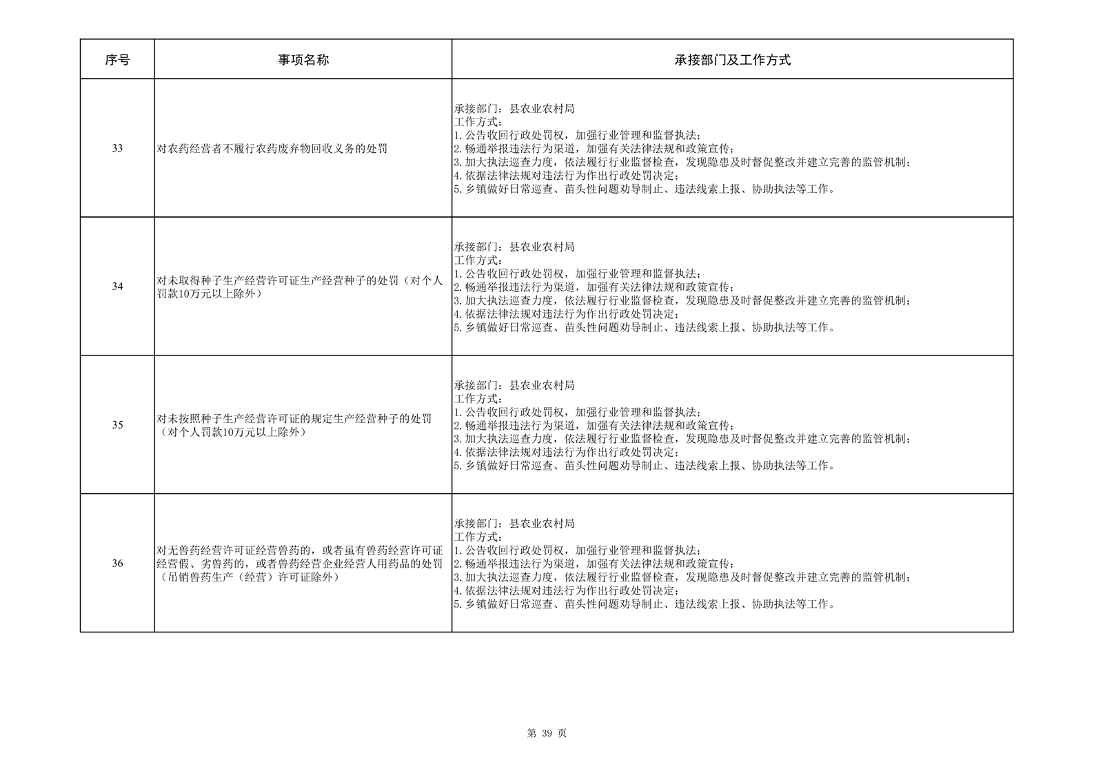 霍邱县三流乡履行职责事项清单