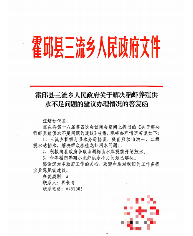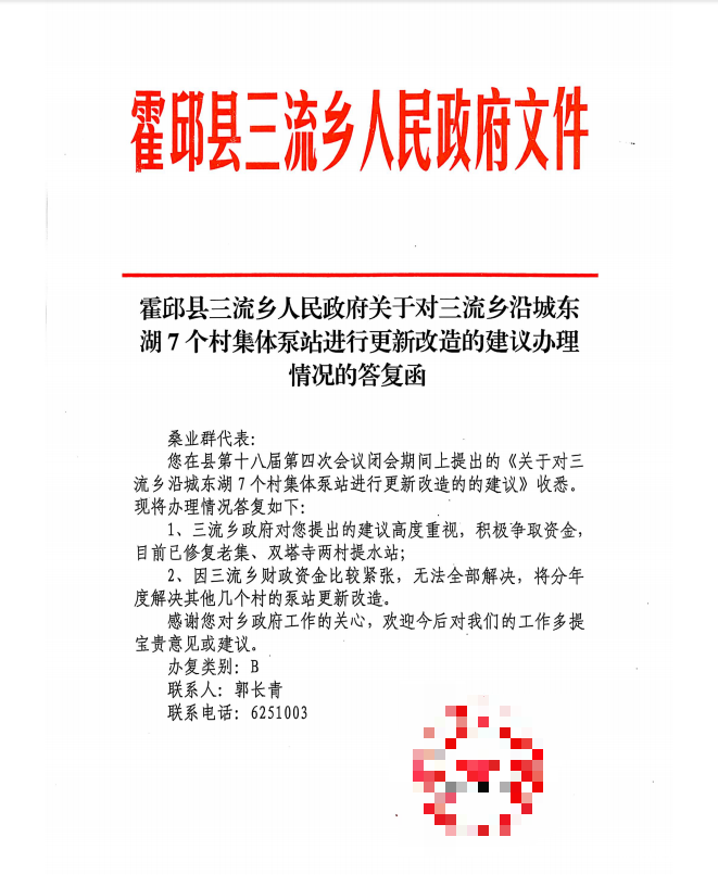 霍邱县三流乡2024年人大代表办理、政协委员提案分解情况
