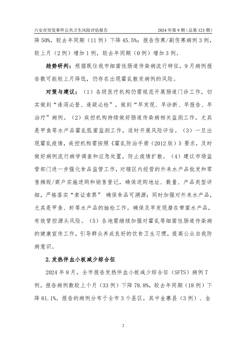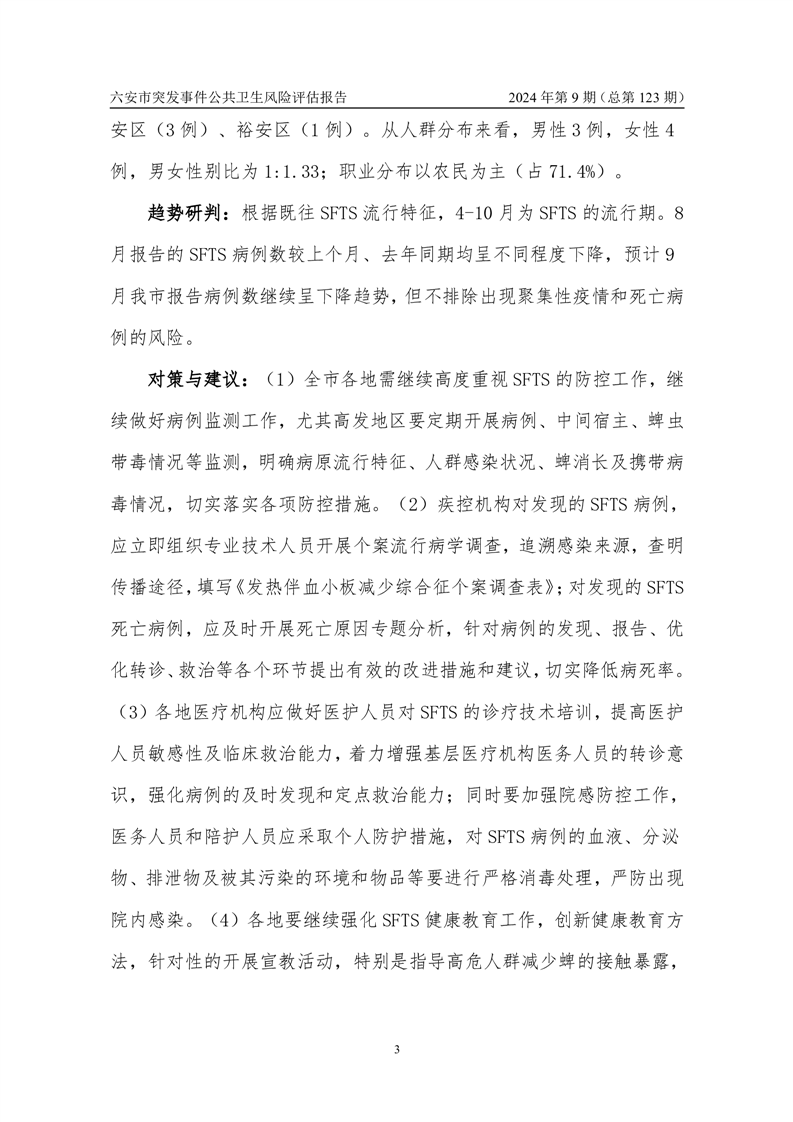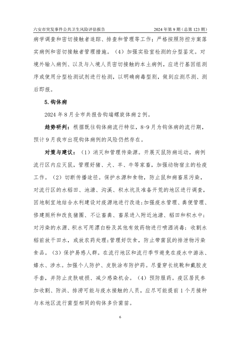【应对情况】2024年9月份六安市突发公共卫生事件预警信息及对策建议