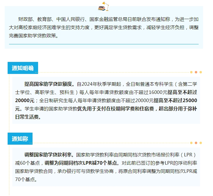 【惠民政策】提额度、降利率!国家助学贷款政策调整