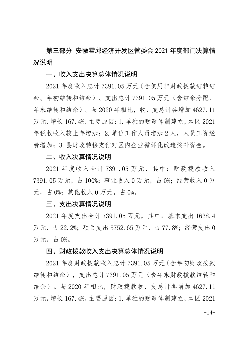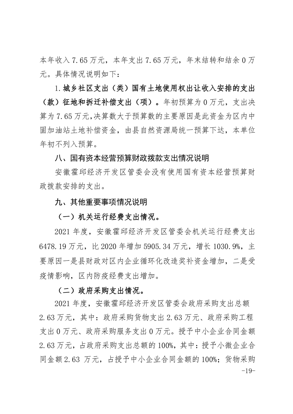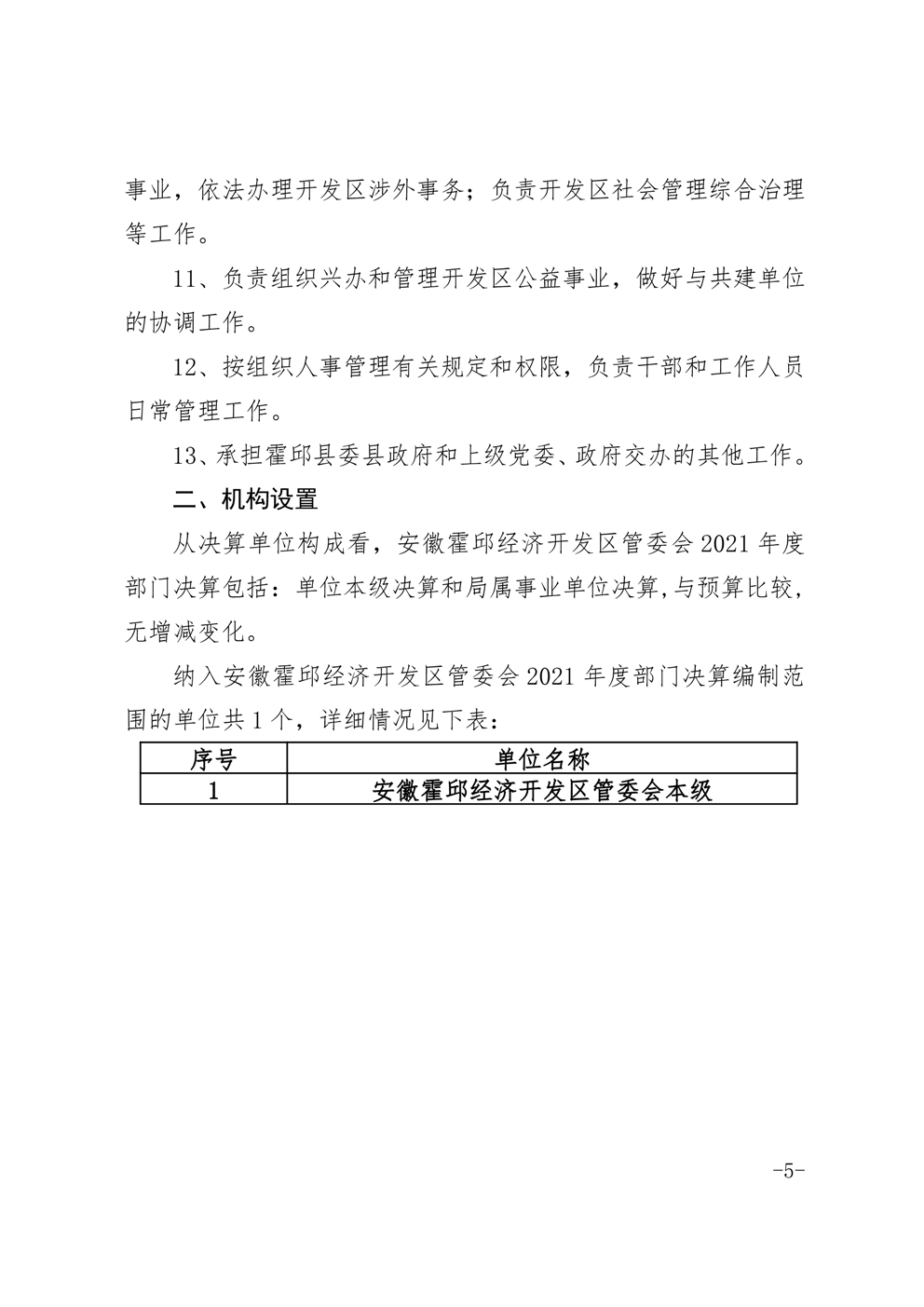 安徽霍邱经济开发区管委会2021年度部门决算