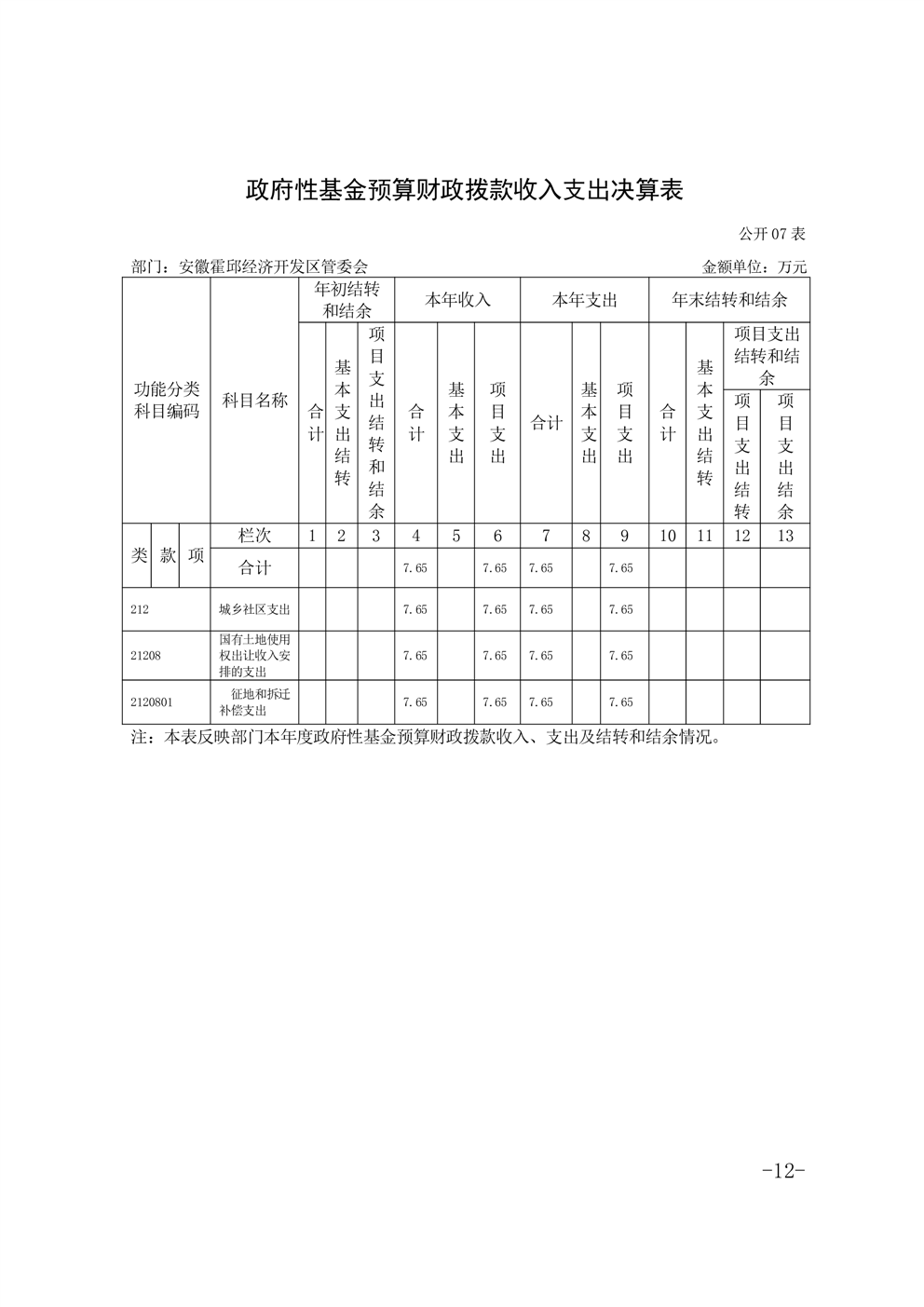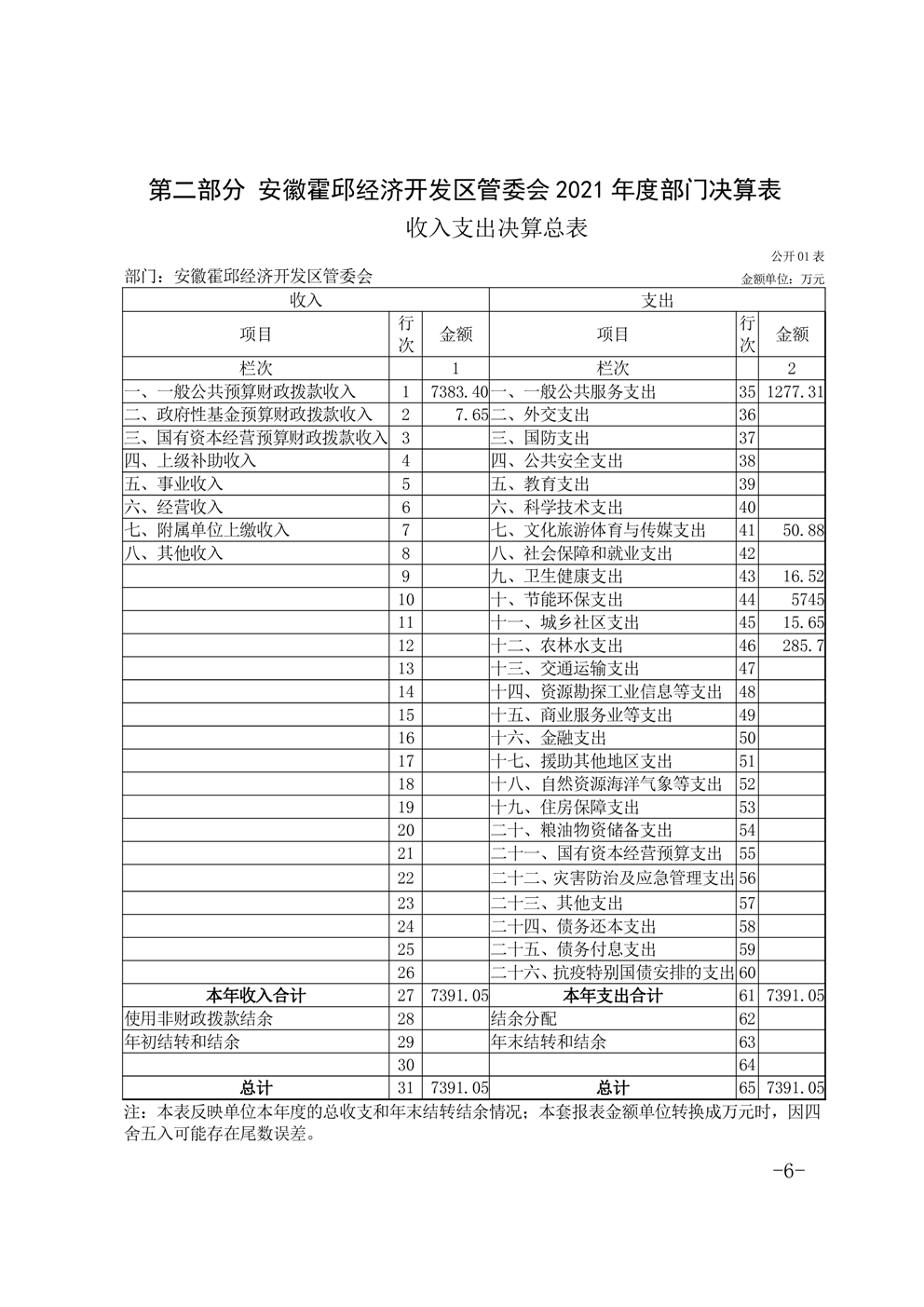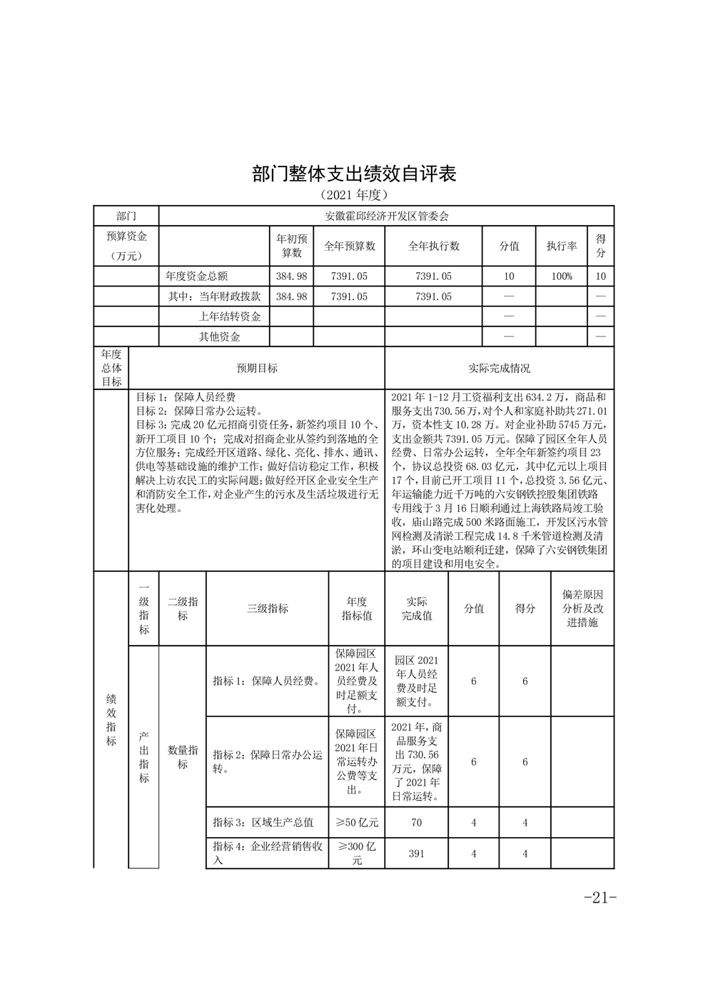 安徽霍邱经济开发区管委会2021年度部门决算