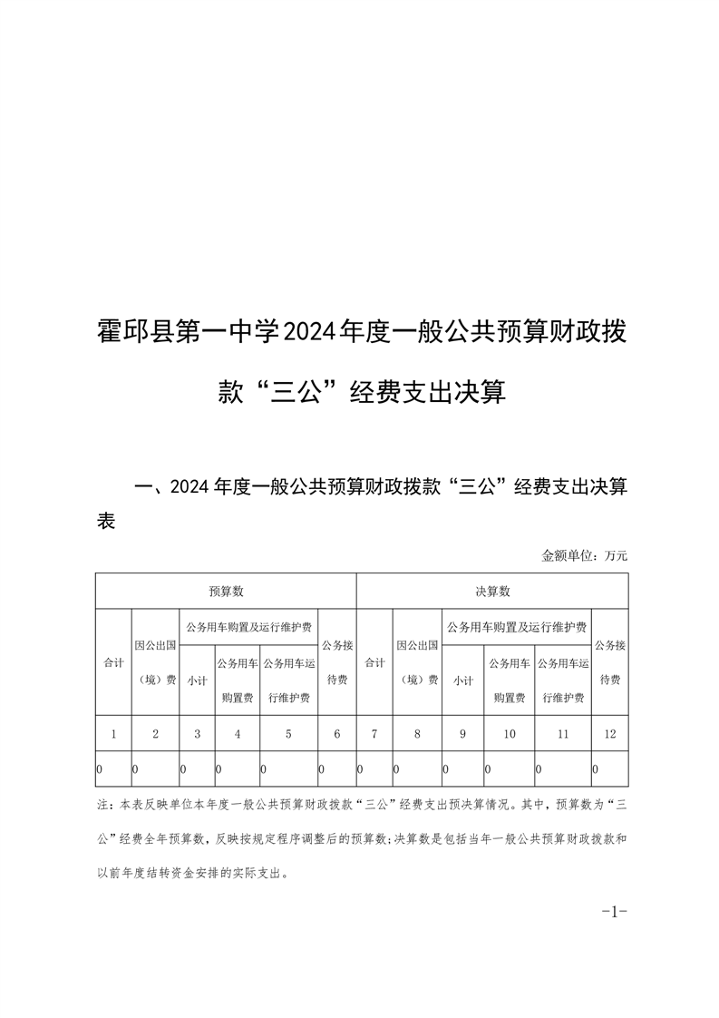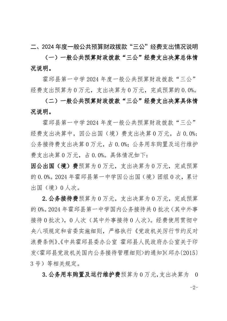 霍邱县第一中学2024年度三公经费