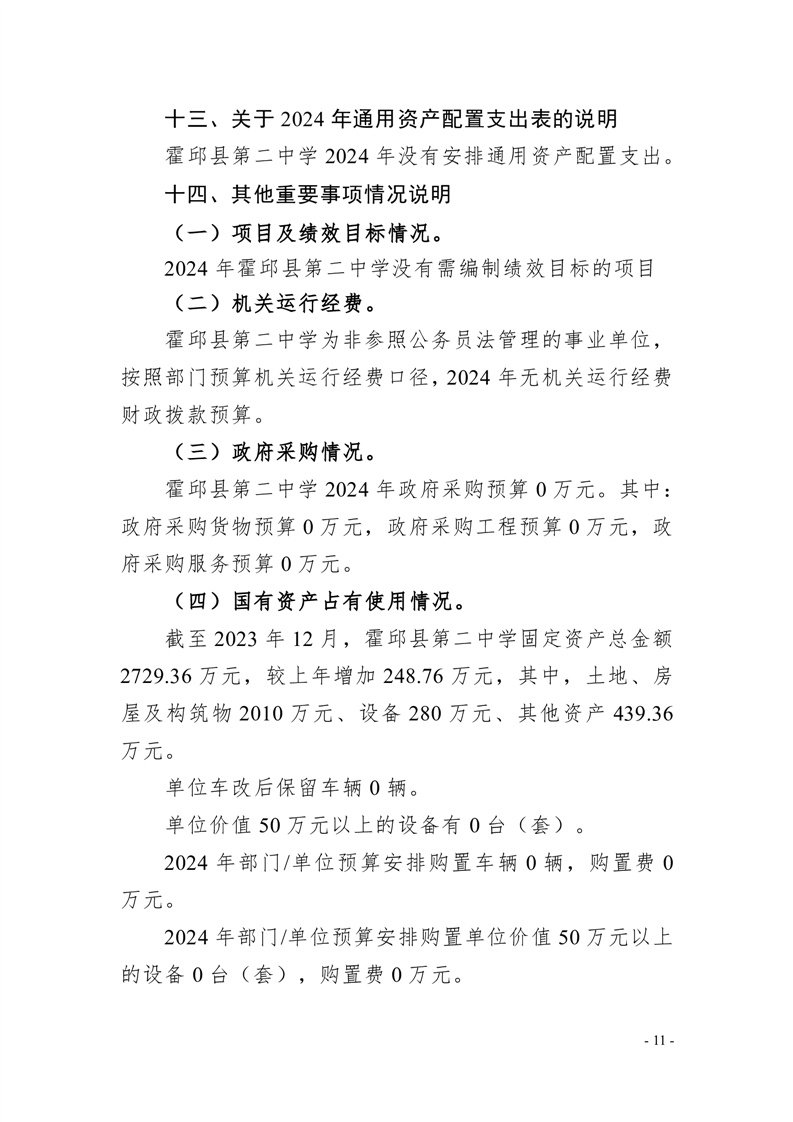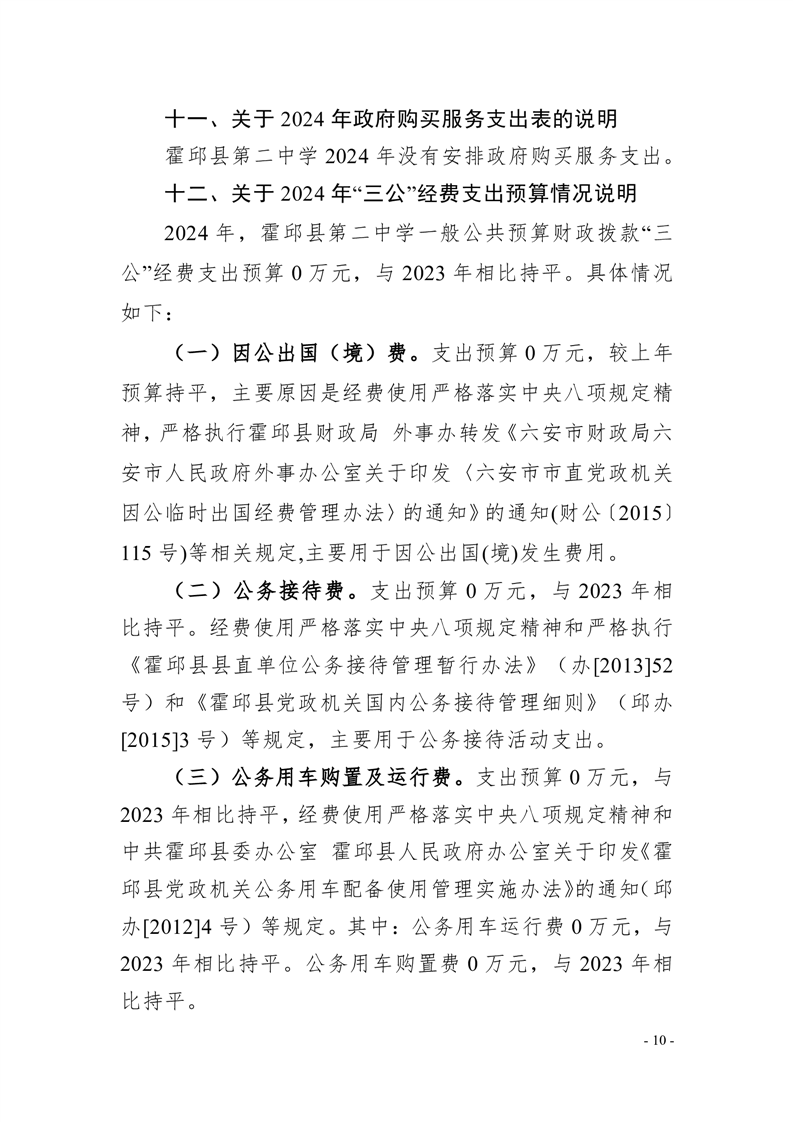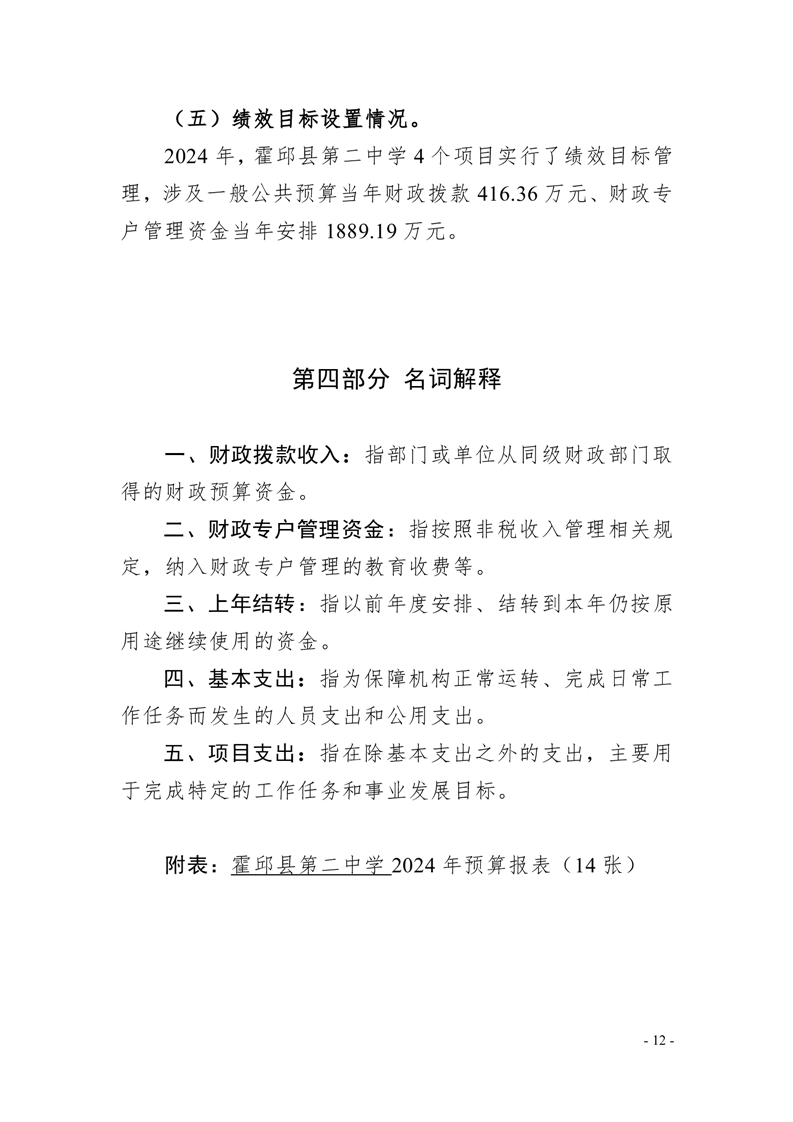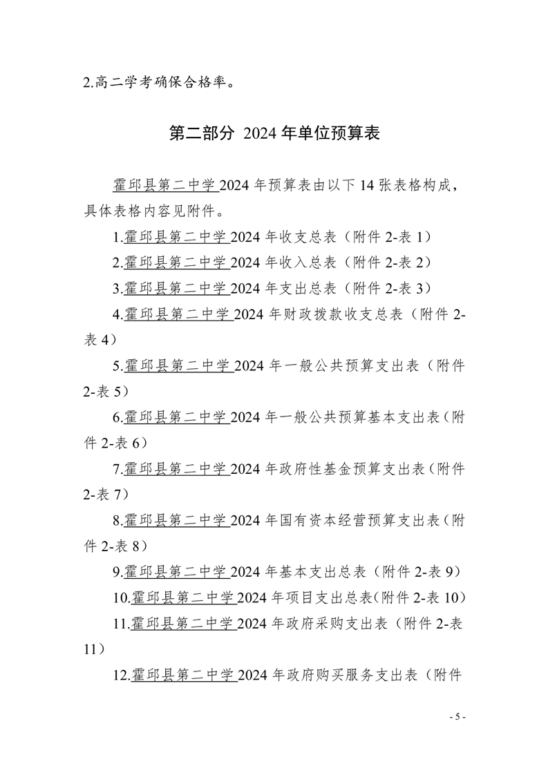 霍邱县第二中学2024年单位预算公开