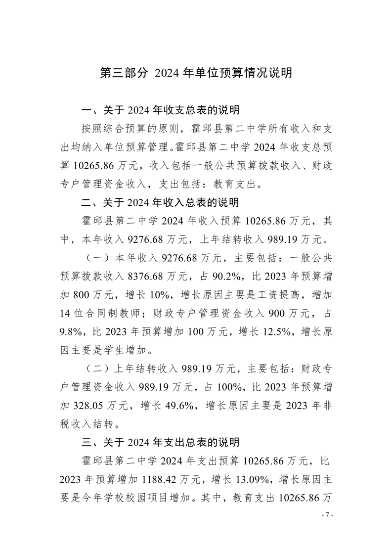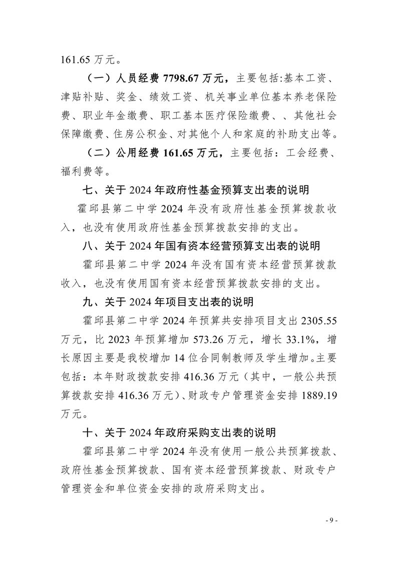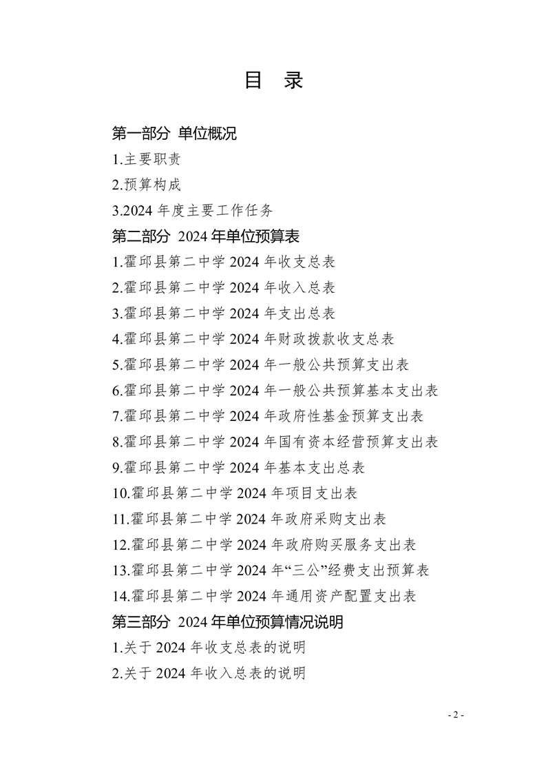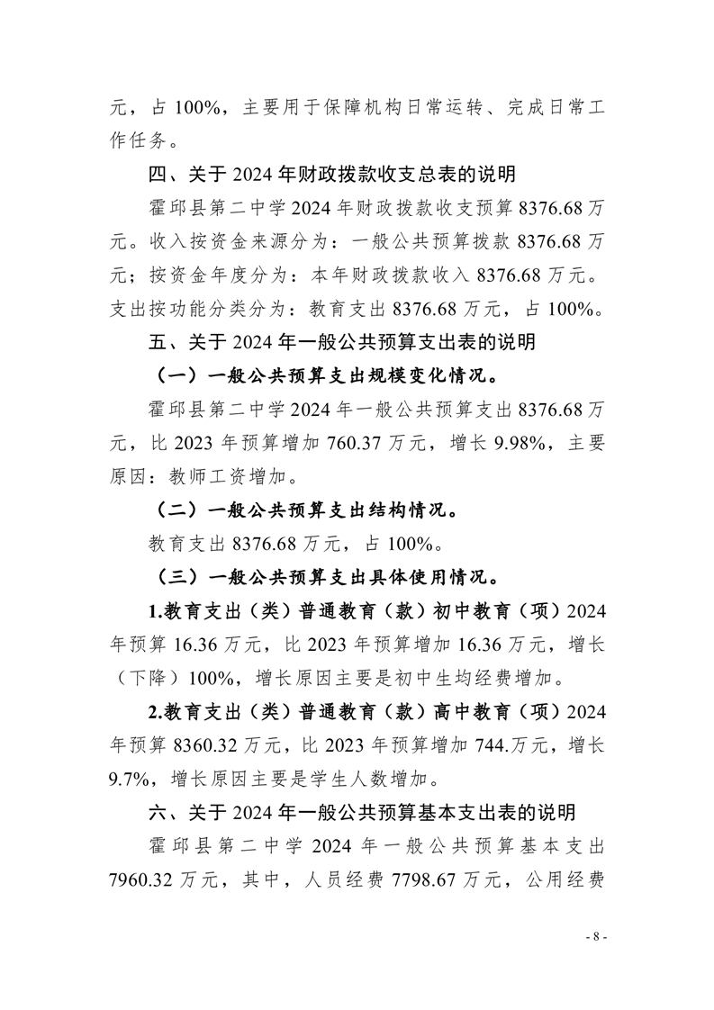 霍邱县第二中学2024年单位预算公开