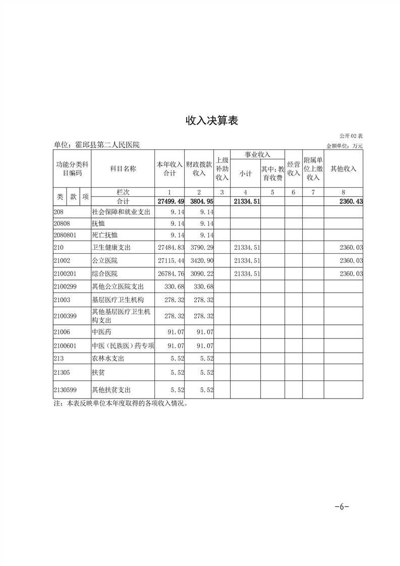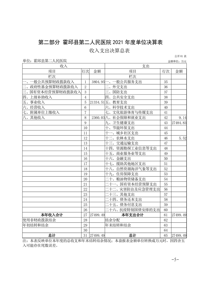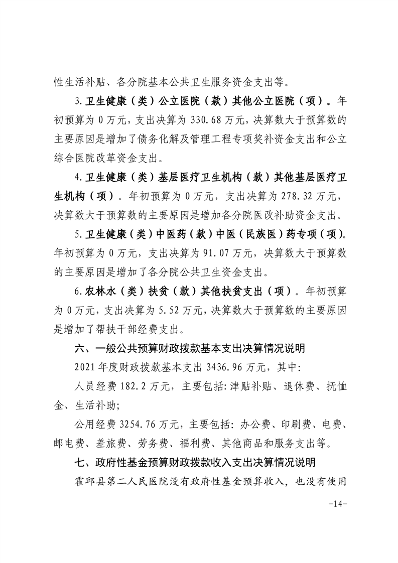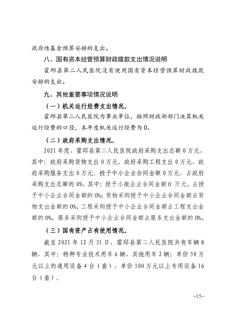 霍邱县第二人民医院2021年单位决算