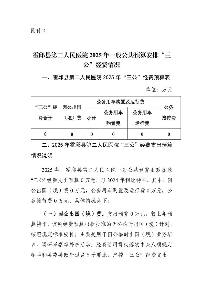 霍邱县第二人民医院2025年一般公共预算安排“三公”经费情况