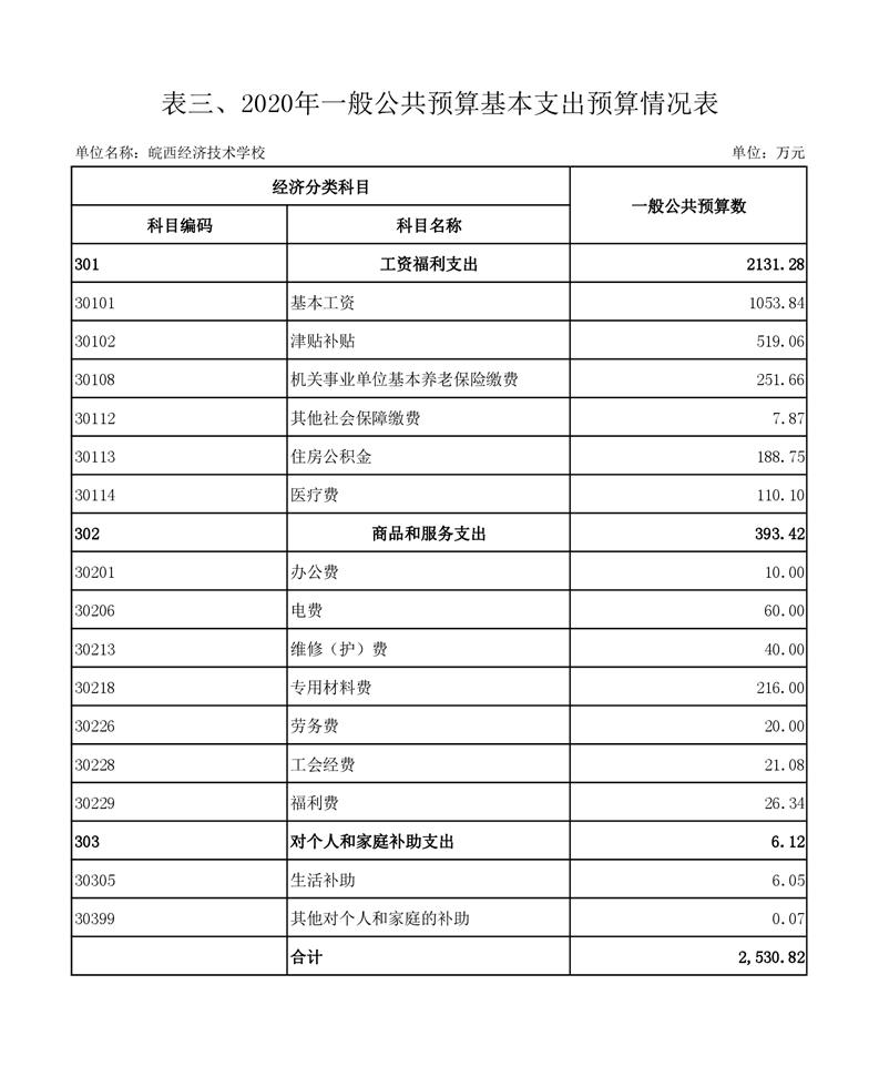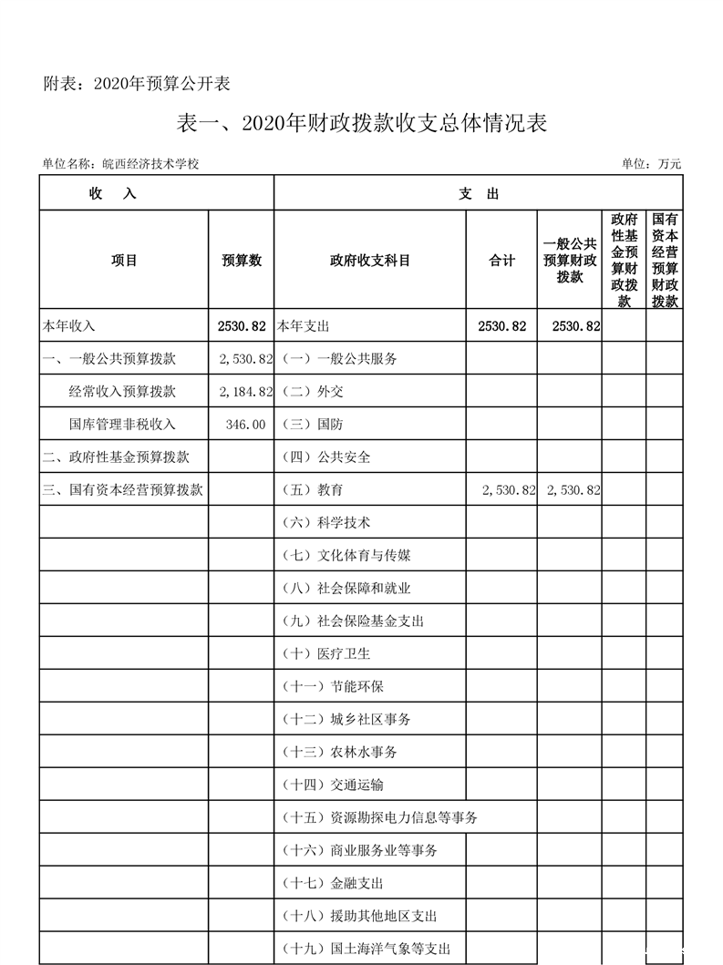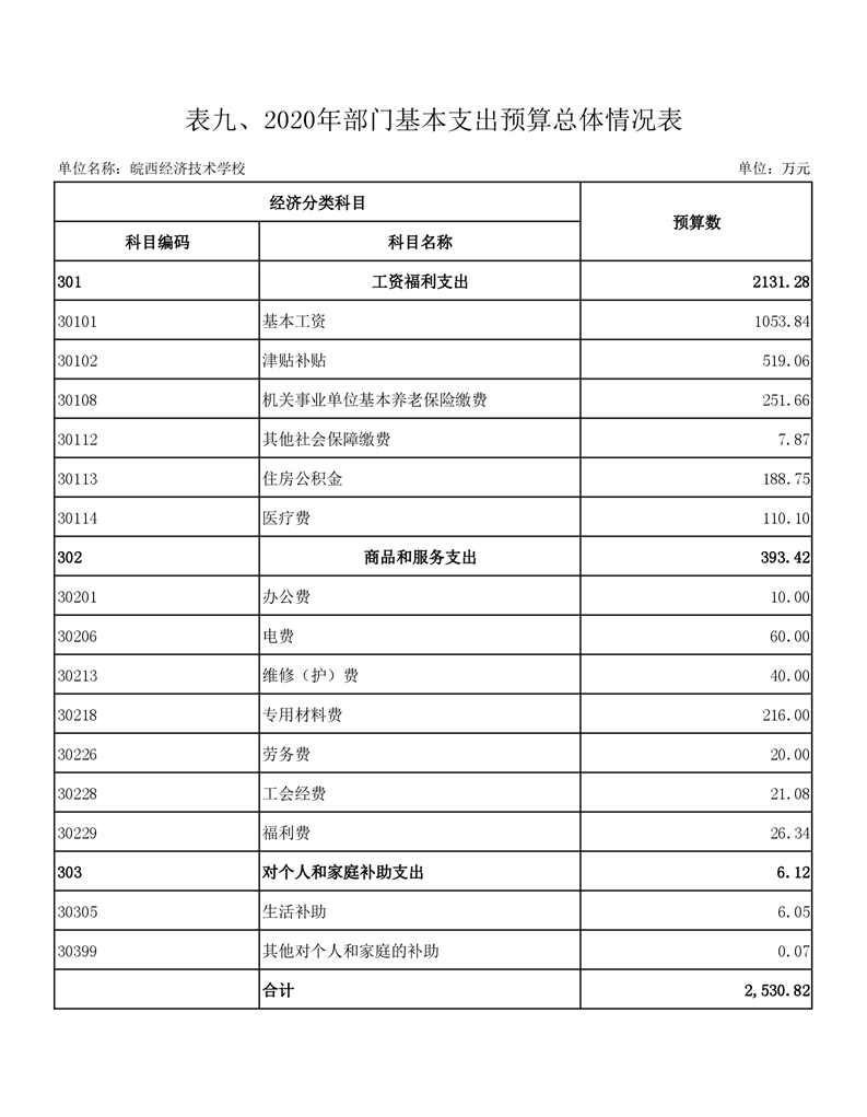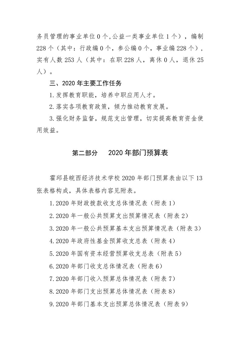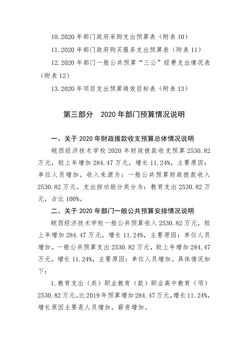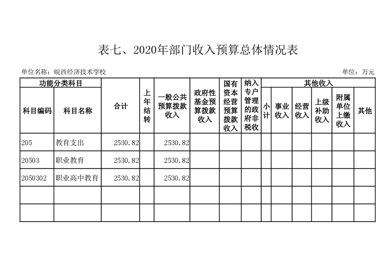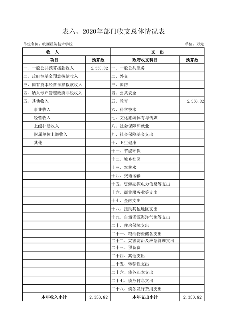 皖西经济技术学校2020年部门预算