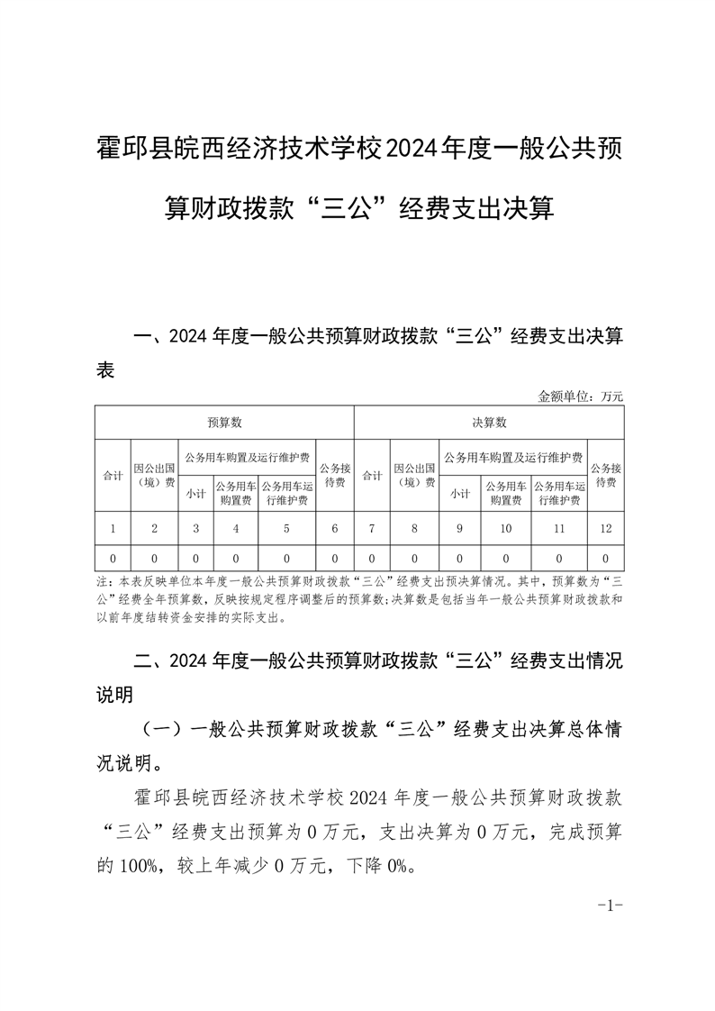 皖西经济技术学校2024年度一般公共预算财政拨款“三公”经费支出决算