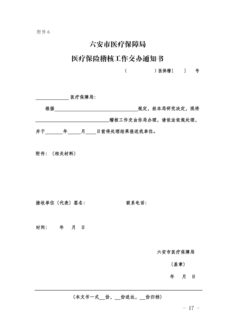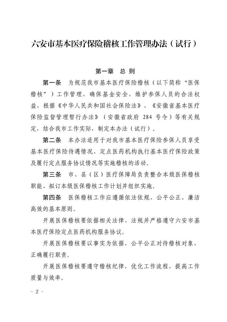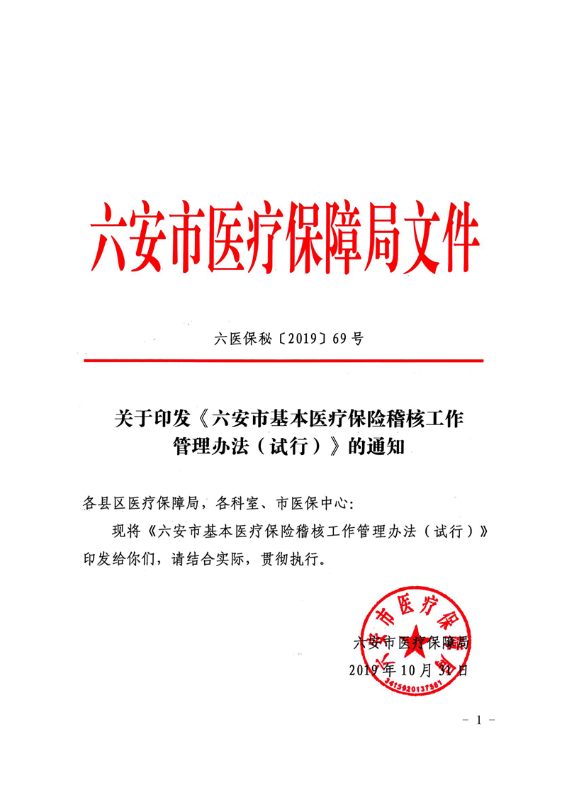 六安市基本医疗保险稽核管理办法(试行)六医保秘〔2019〕69号扫描件
