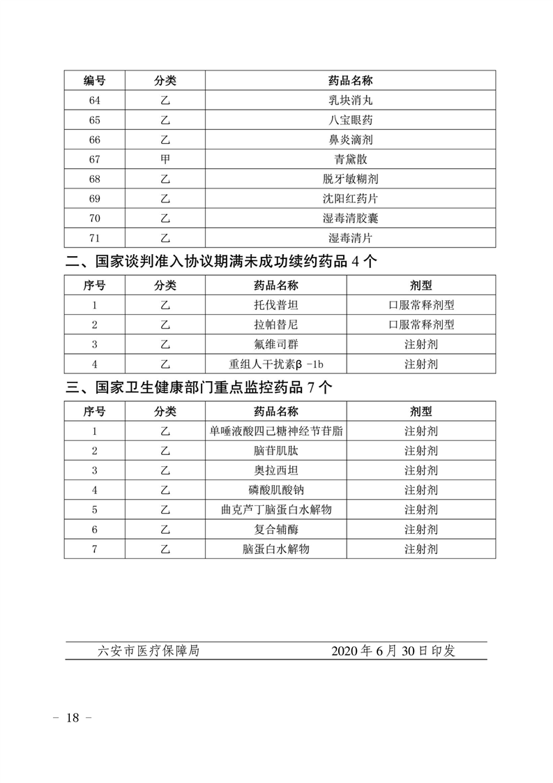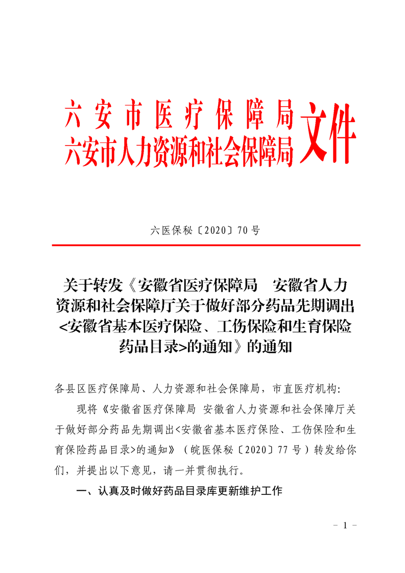 六医保秘〔2020〕70号 关于做好部分药品先期调出药品目录的通知