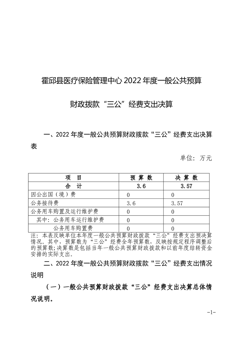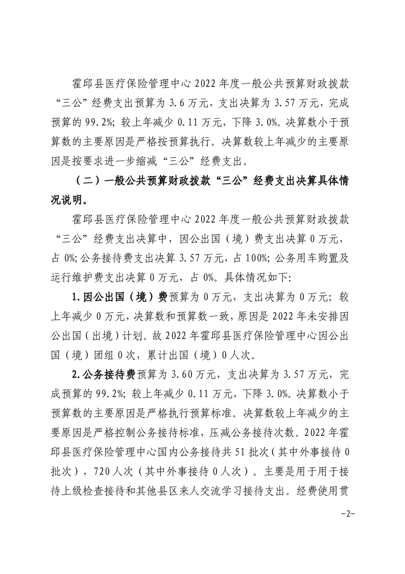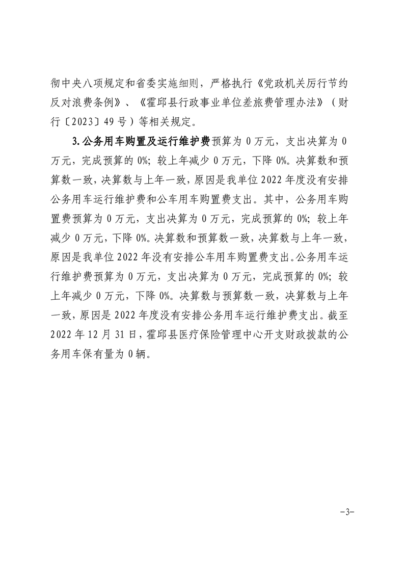 霍邱县医疗保险管理中心2022年度一般公开预算财政拨款“三公”经费支出决算