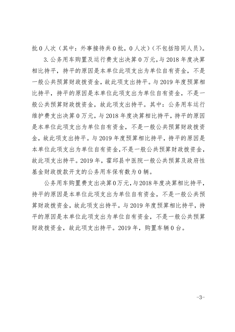 霍邱县中医院2019年度一般公共预算财政拨款“三公”经费支出决算情况说明