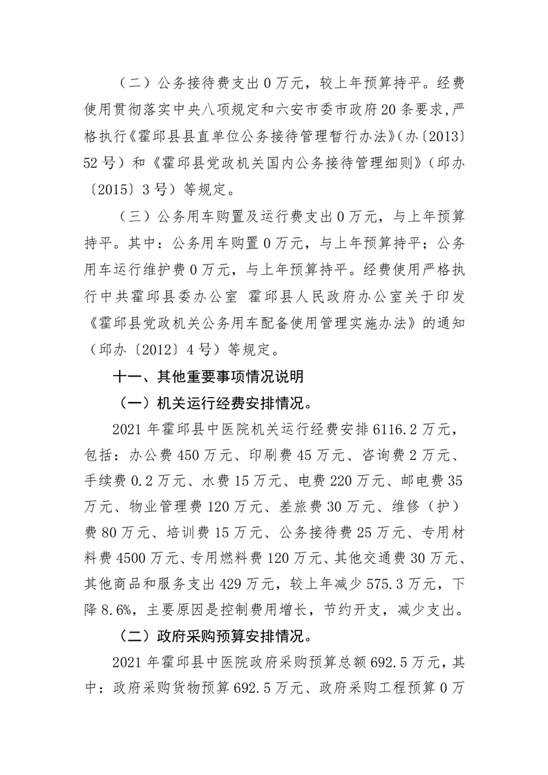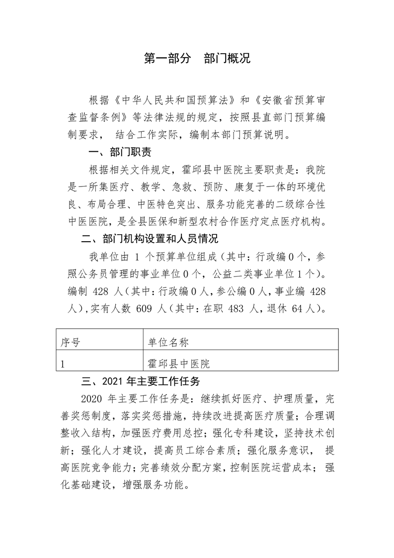 霍邱县中医院2021年预算公开