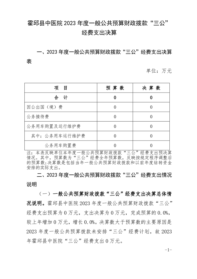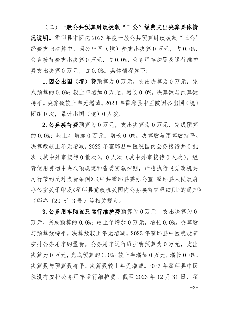 霍邱县中医院2023年度一般公共预算财政拨款“三公”经费支出决算