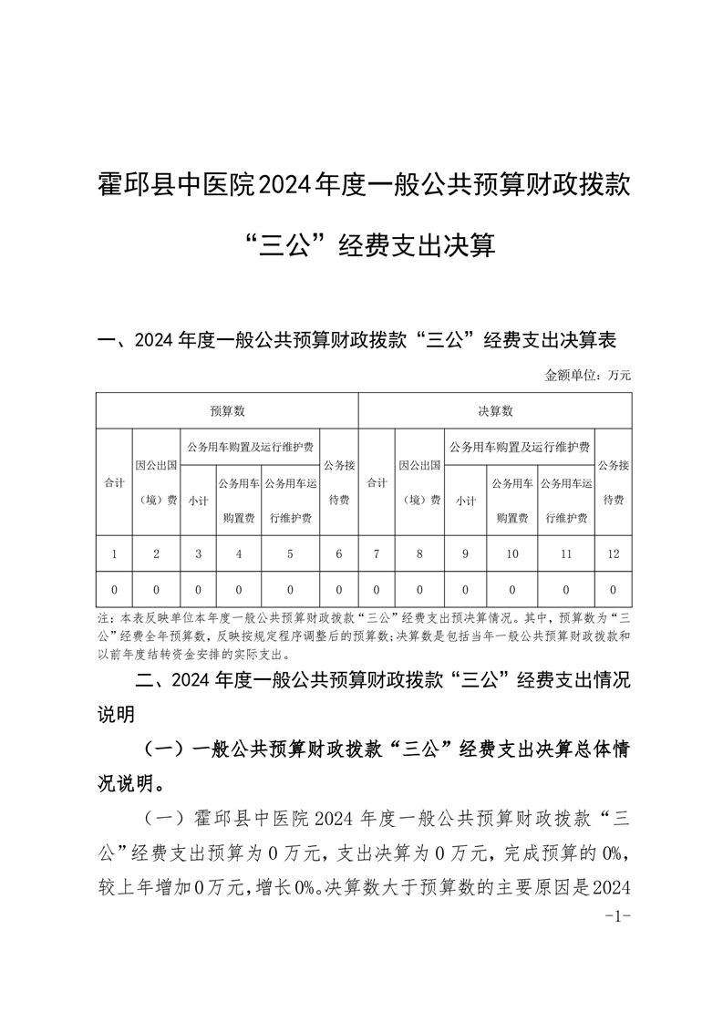霍邱县中医院2024年度一般公共预算财政拨款“三公”经费支出决算
