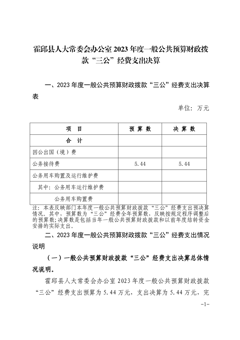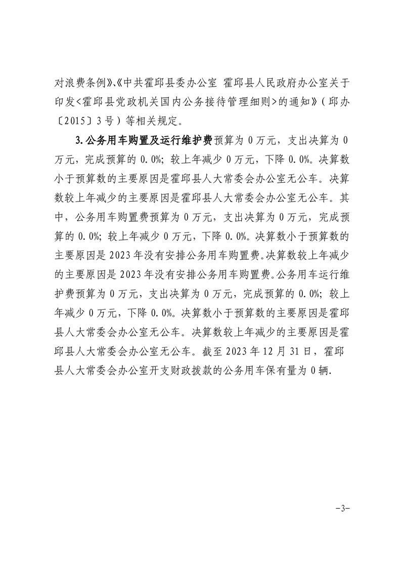 霍邱县人大常委会办公室2023年度一般公共预算财政拨款“三公”经费支出决算情况