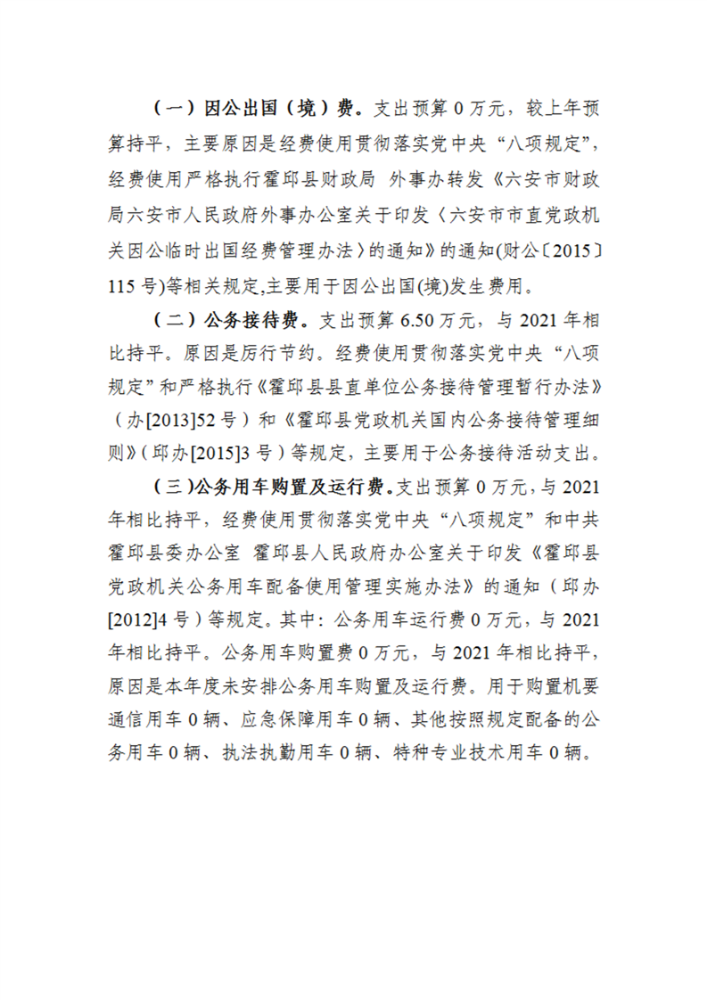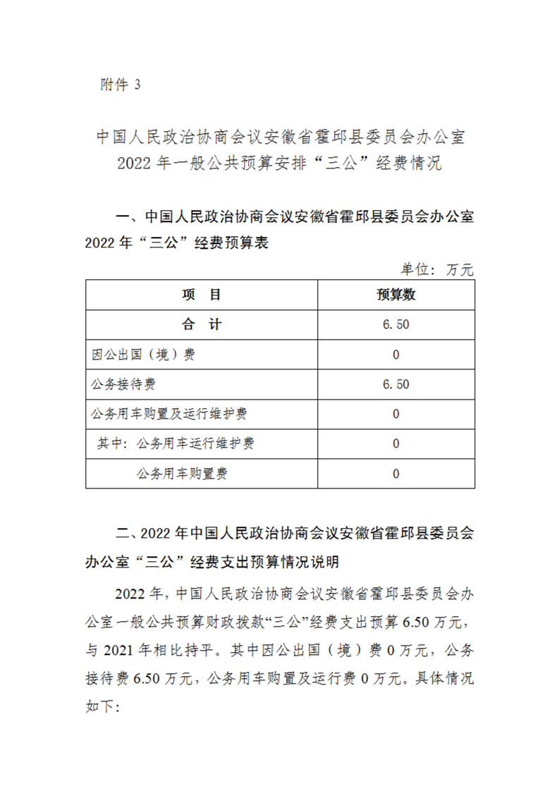 中国人民政治协商会议安徽省霍邱县委员会办公室2022年一般公共预算安排“三公”经费情况