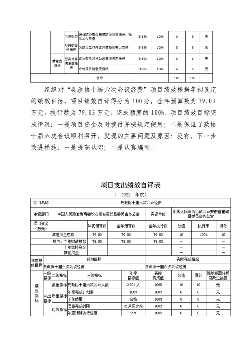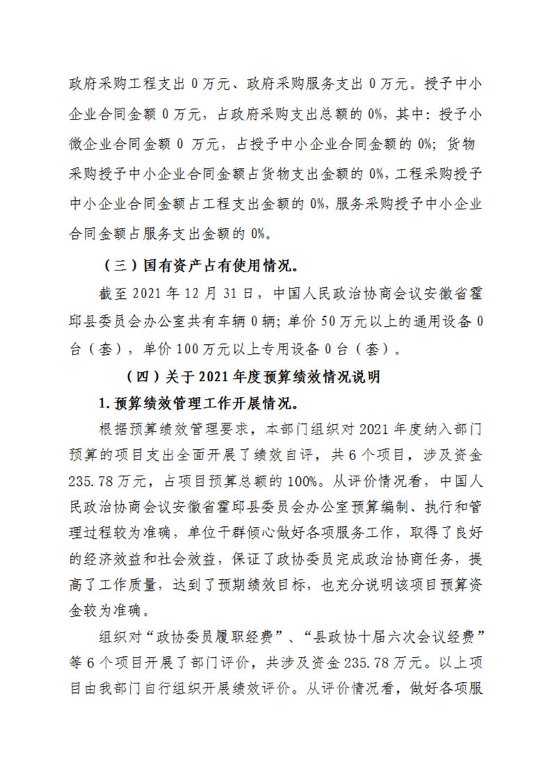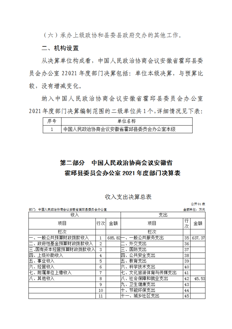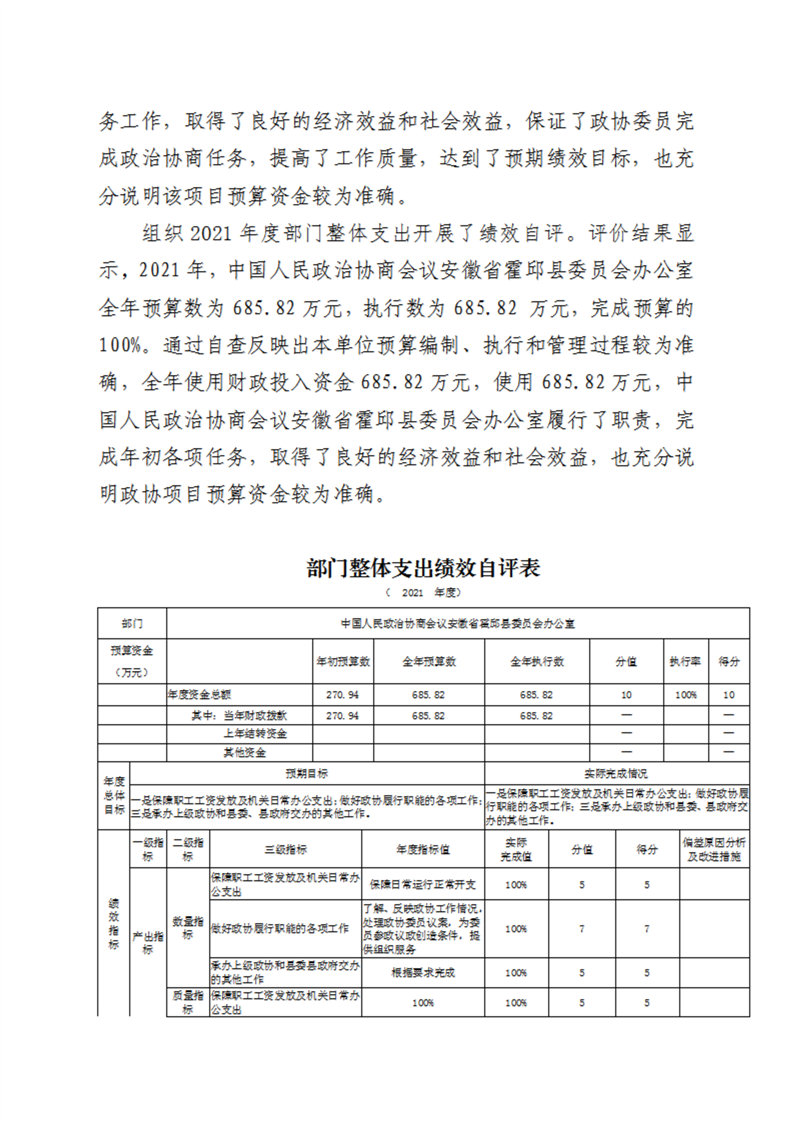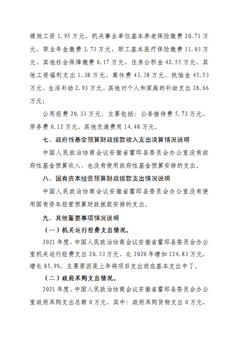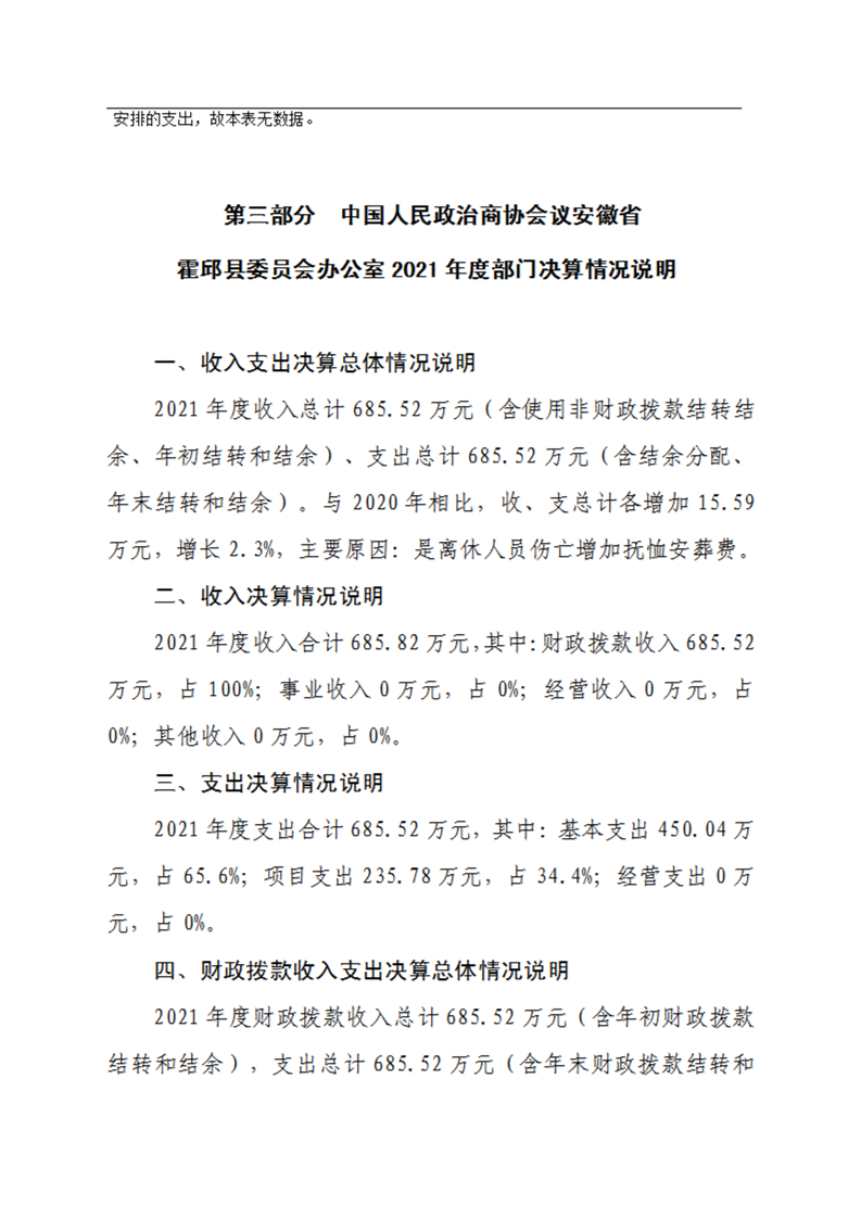 霍邱县委员会办公室2021年度部门决算