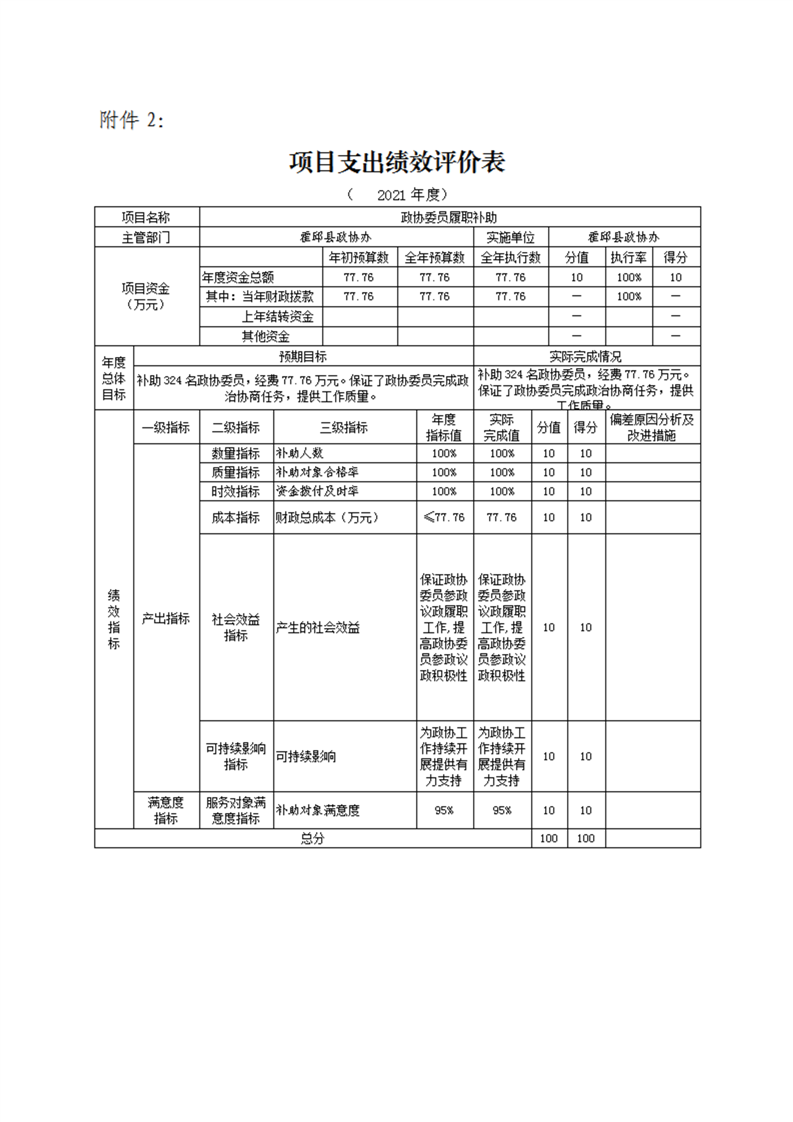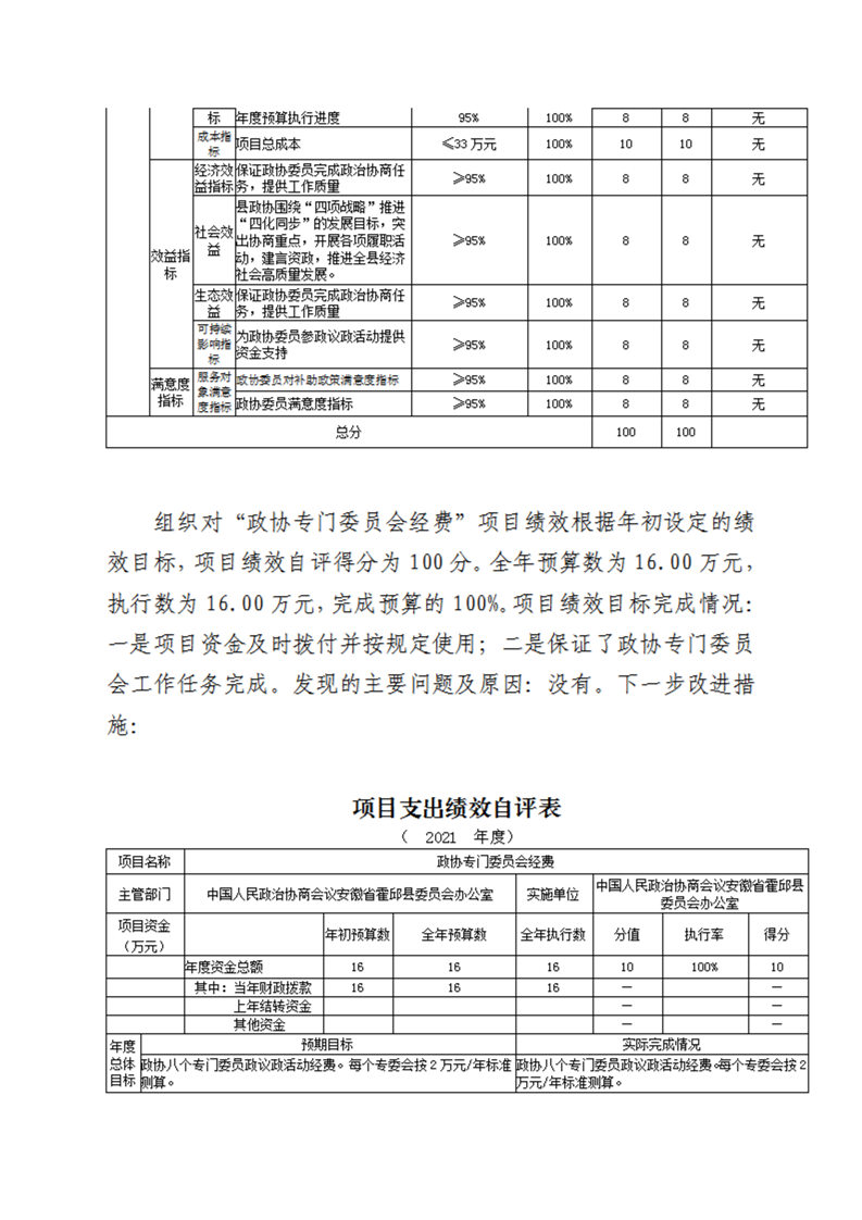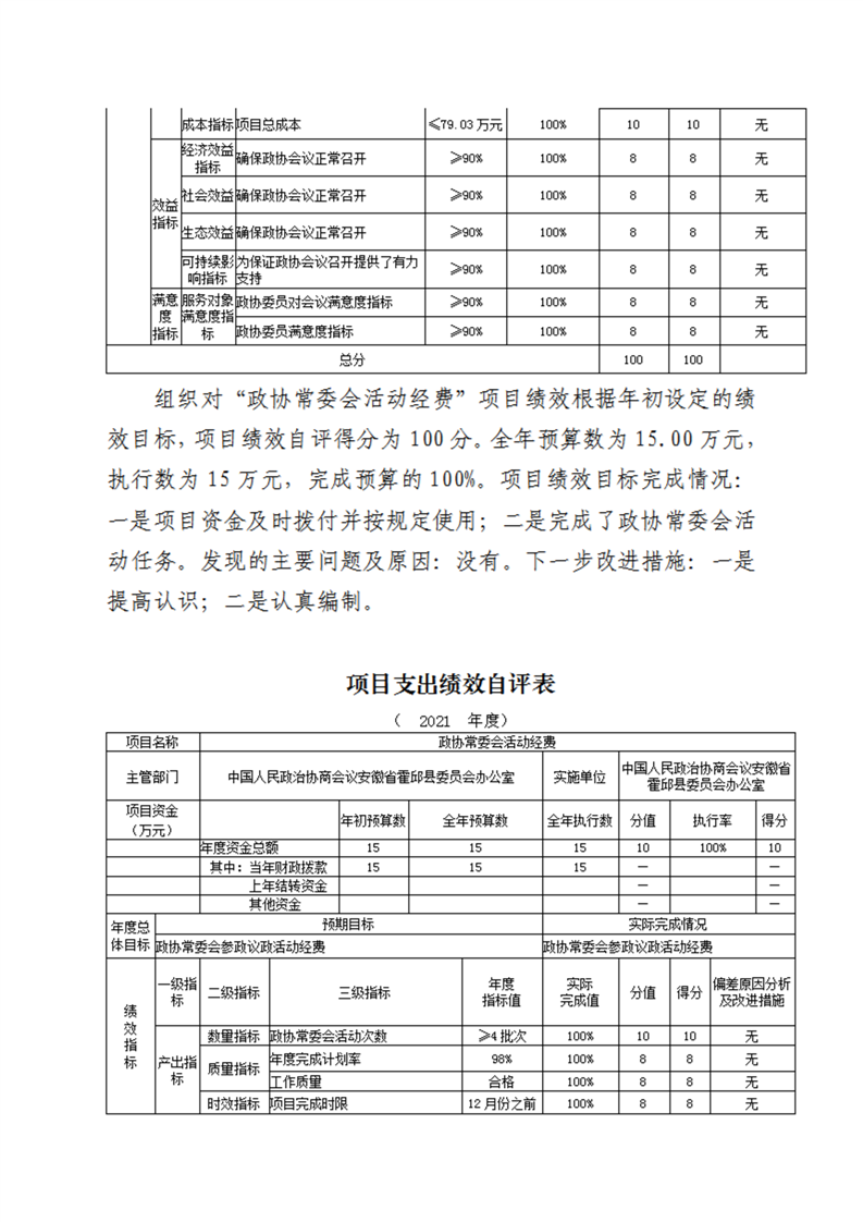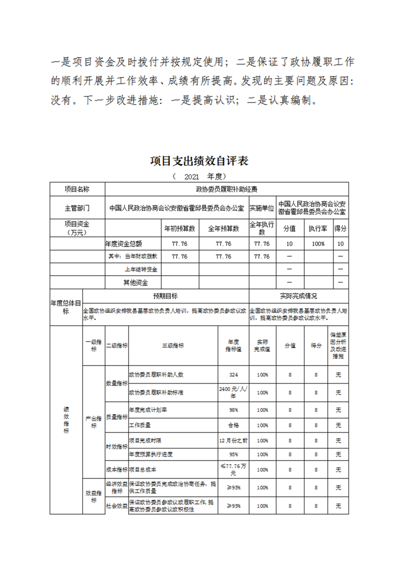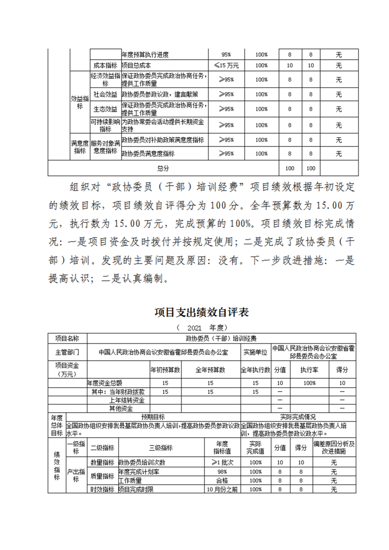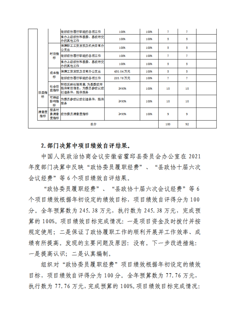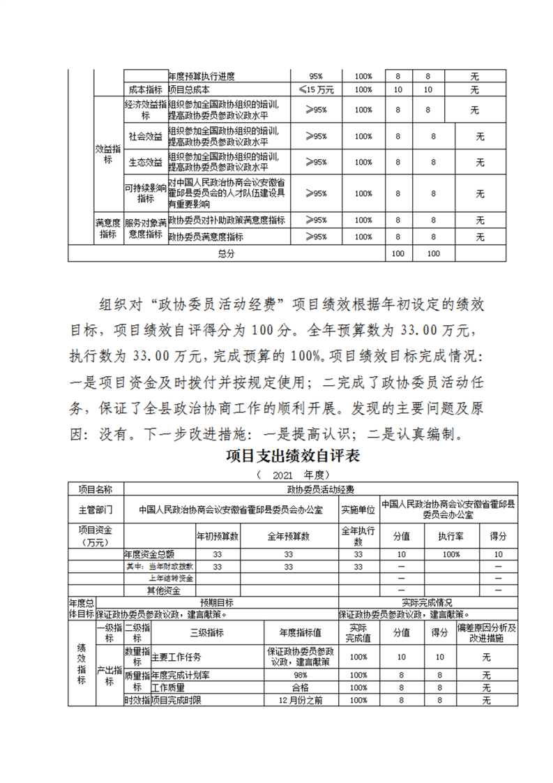 霍邱县委员会办公室2021年度部门决算