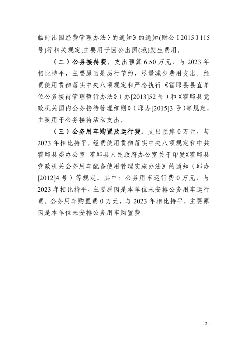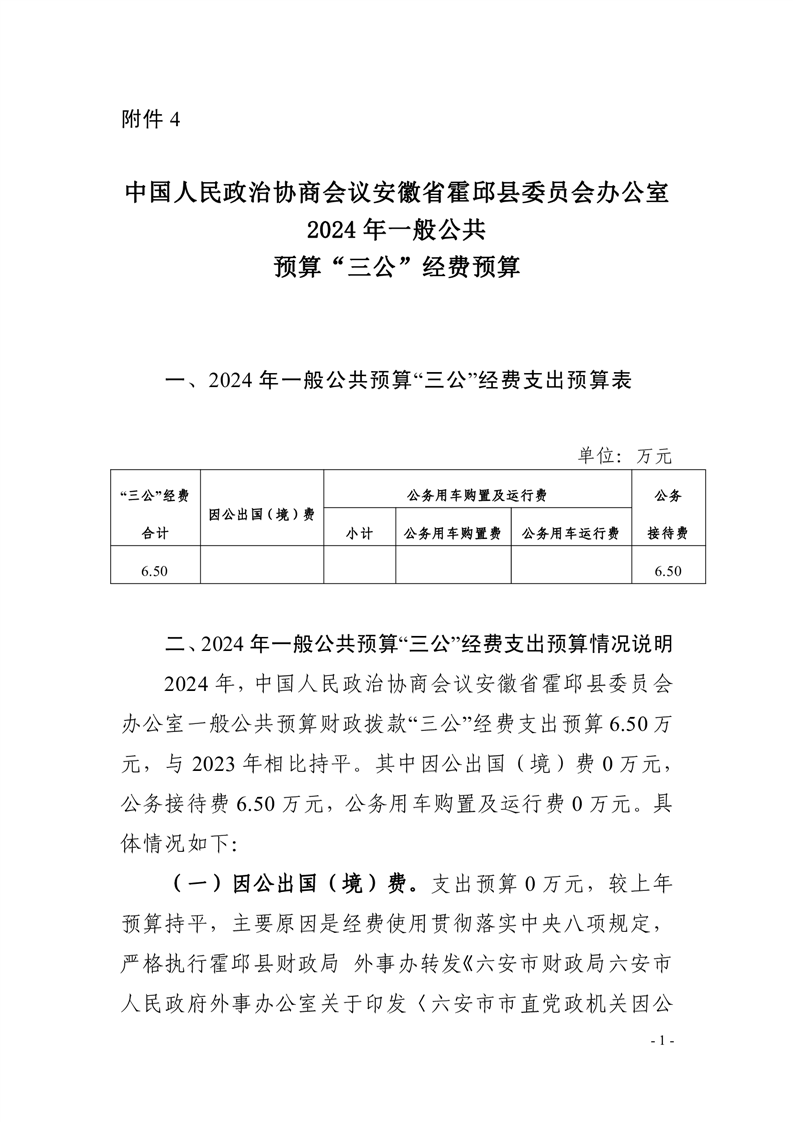 中国人民政治协商会议安徽省霍邱县委员会办公室部门单位2024年一般公共预算安排“三公”经费情况