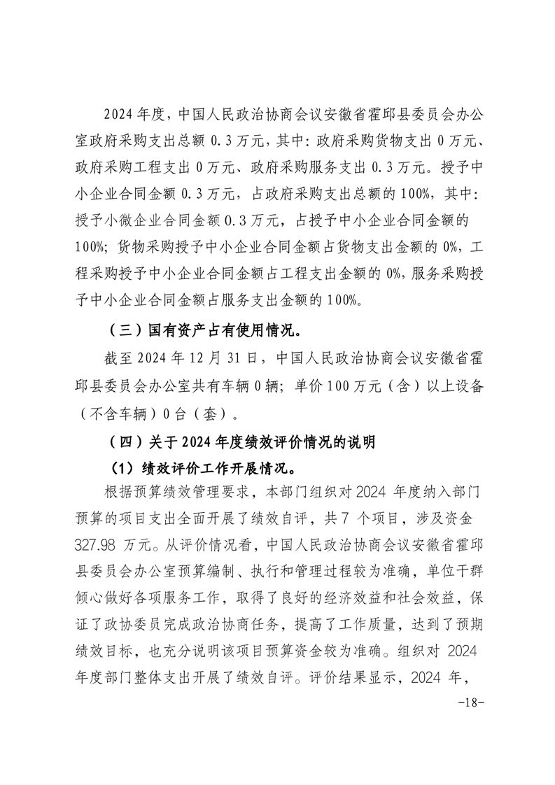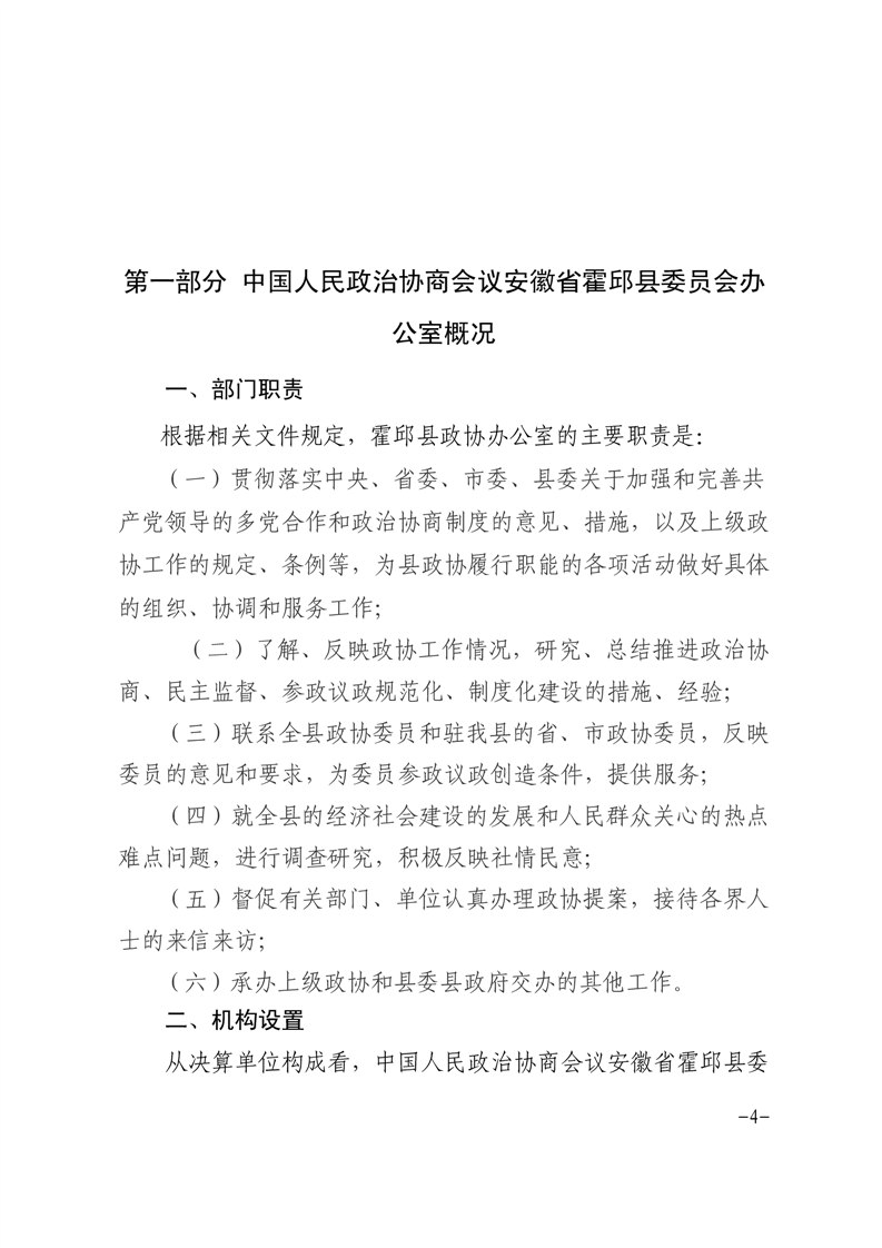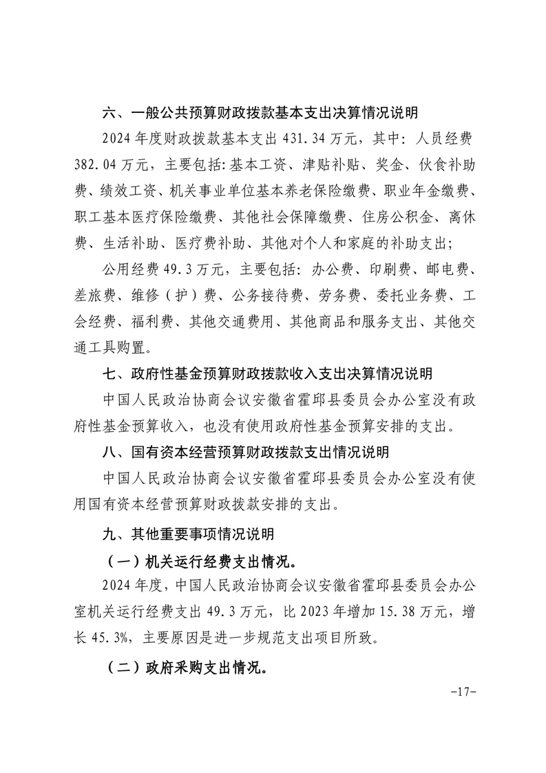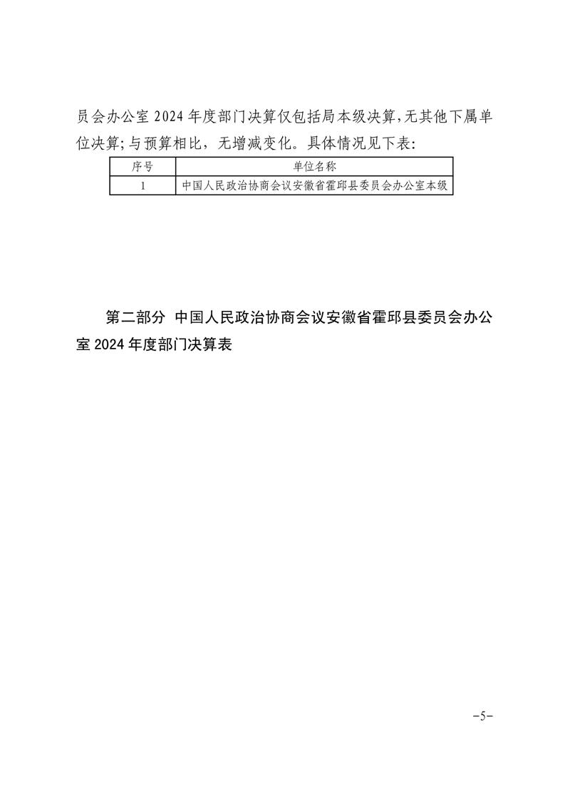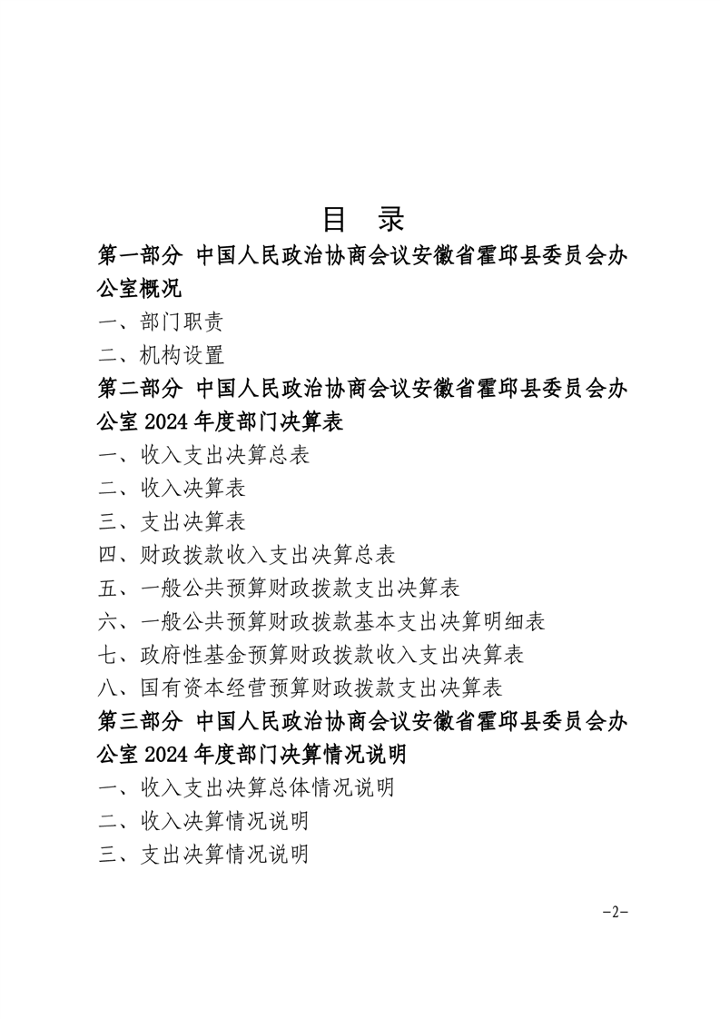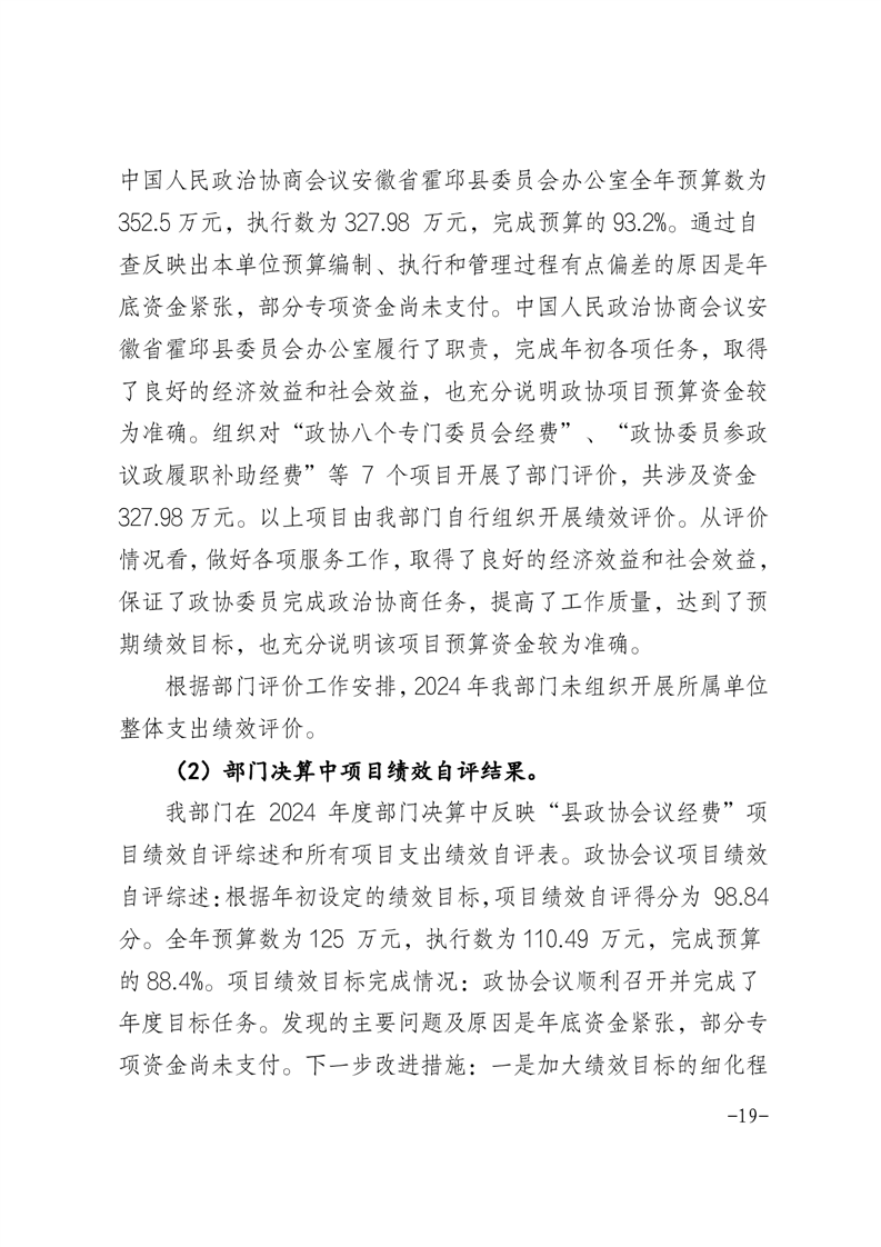 中国人民政治协商会议安徽省霍邱县委员会办公室2024年度部门决算