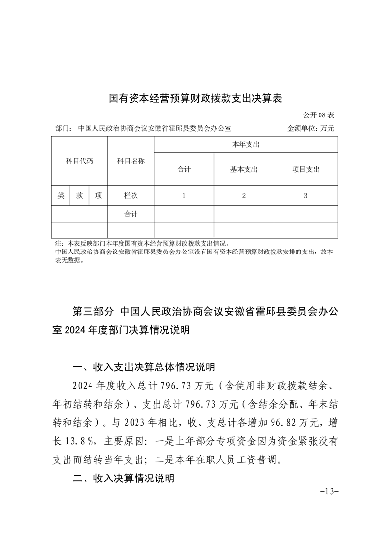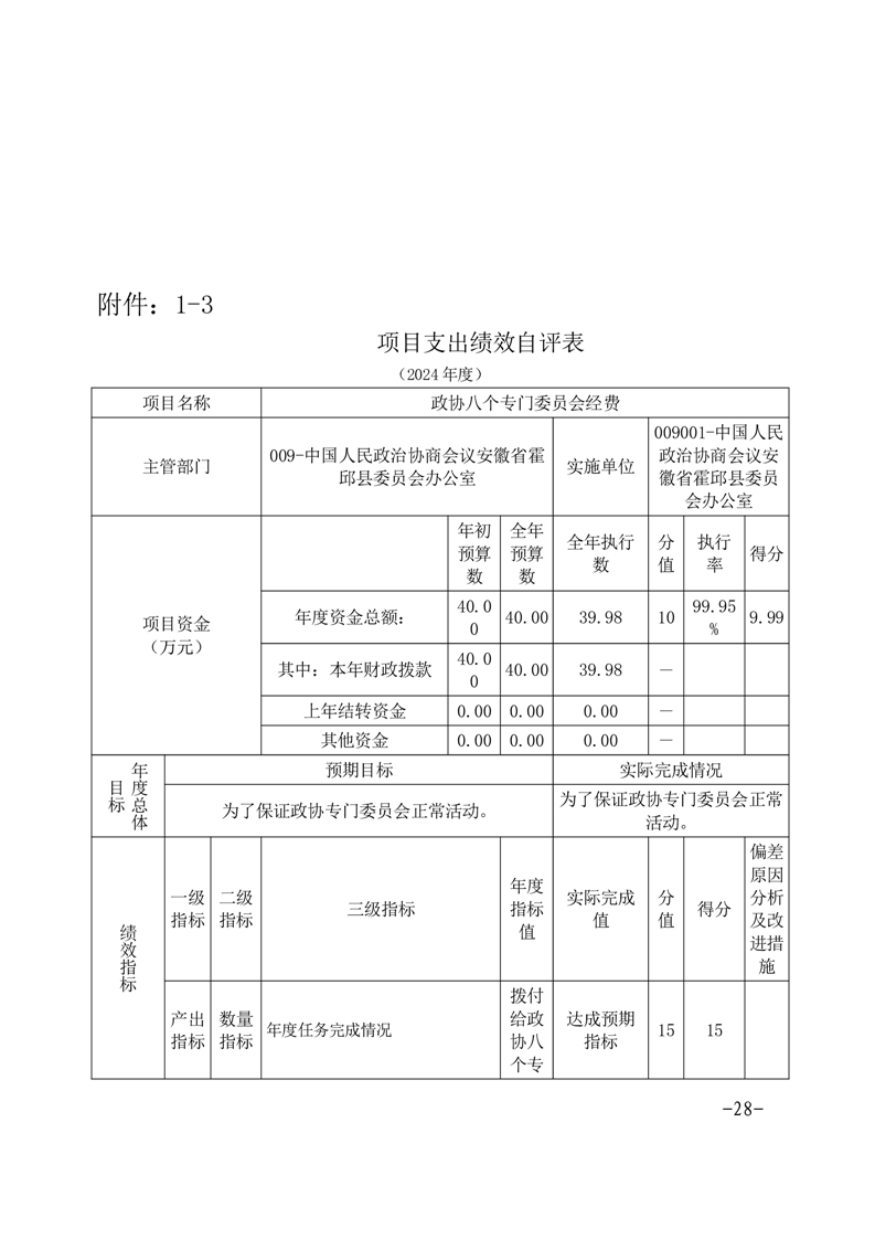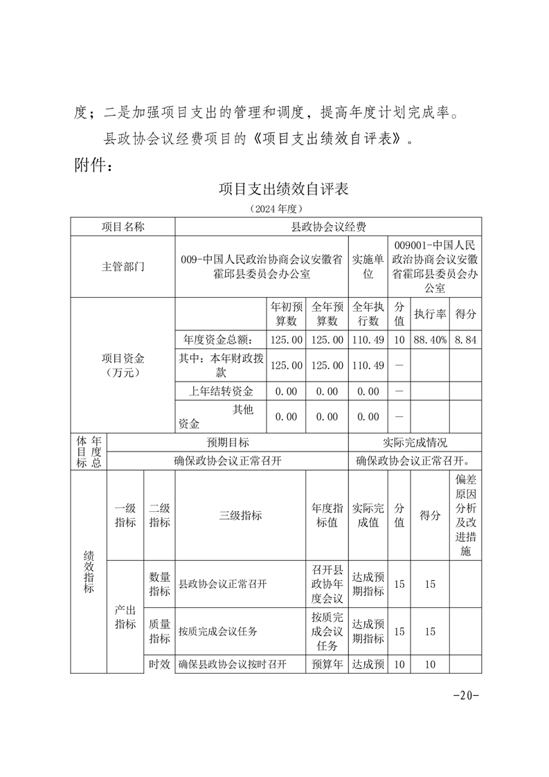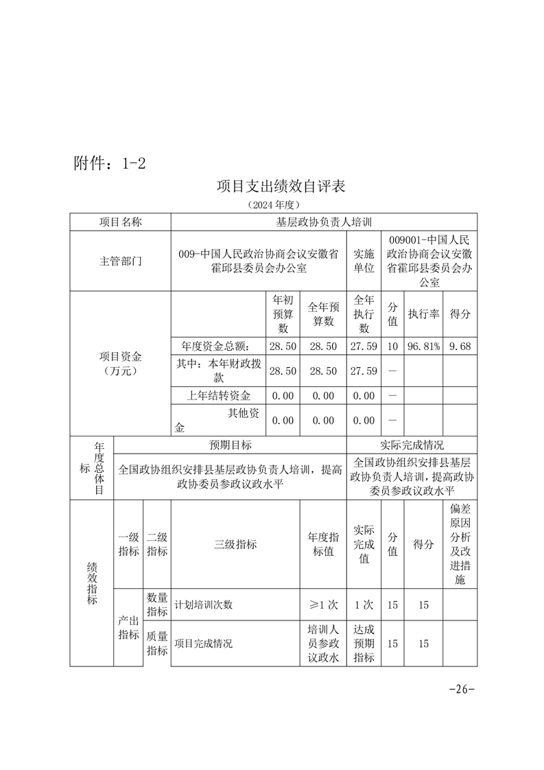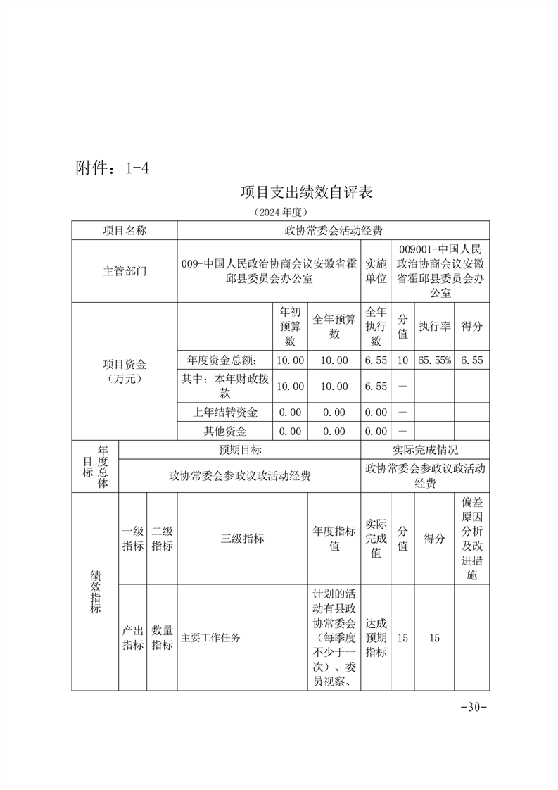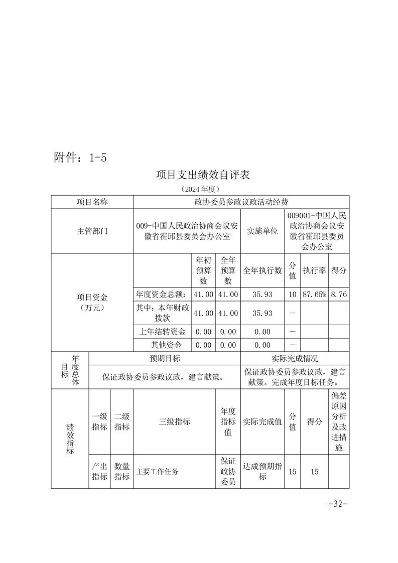 中国人民政治协商会议安徽省霍邱县委员会办公室2024年度部门决算