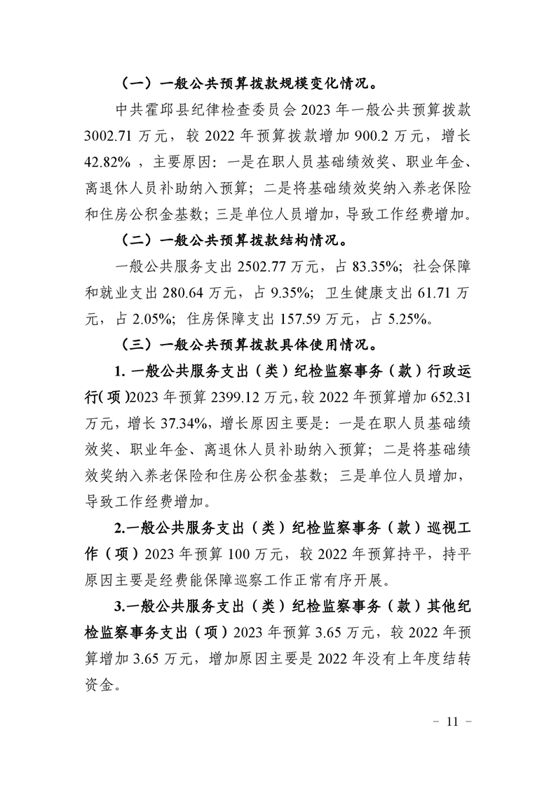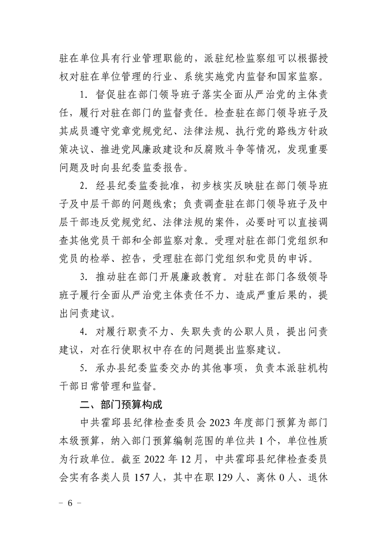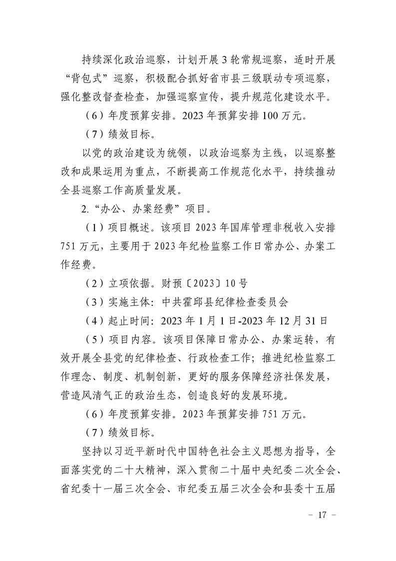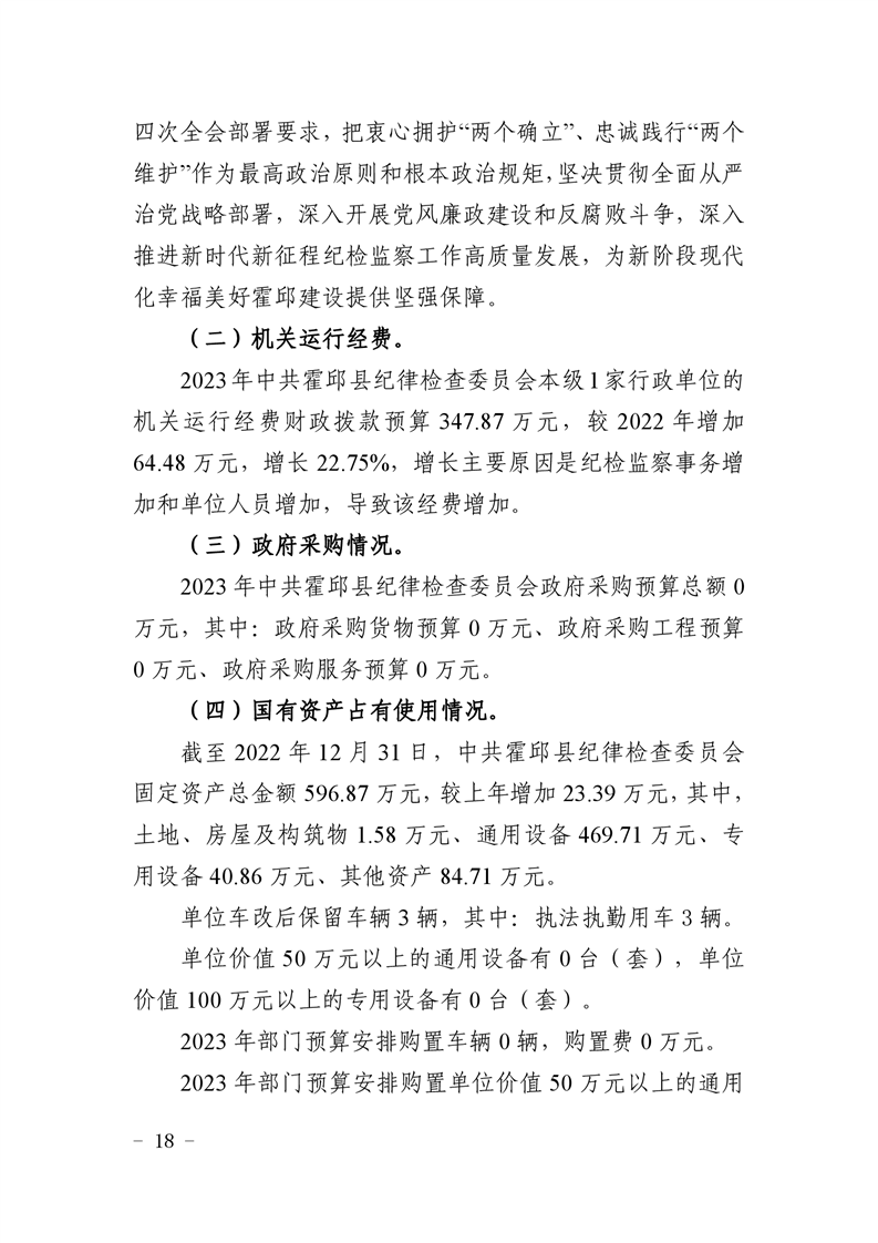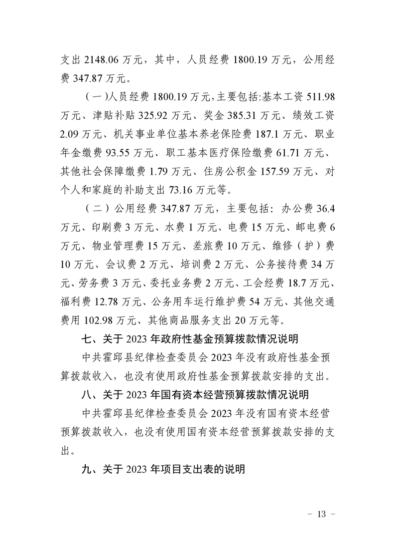中共霍邱县纪律检查委员会2023年部门预算公开
